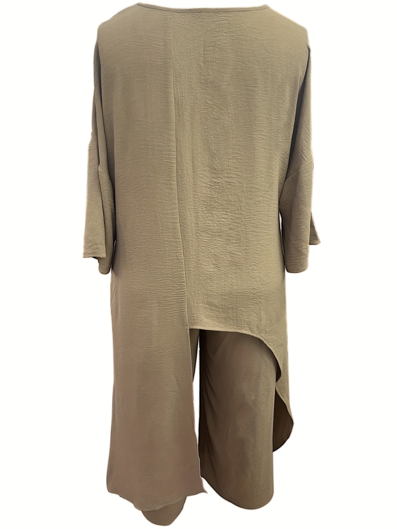 Plus Size Solid Two-Piece Set Women Casual Crew Neck Long Sleeve Top Wide Leg Pants