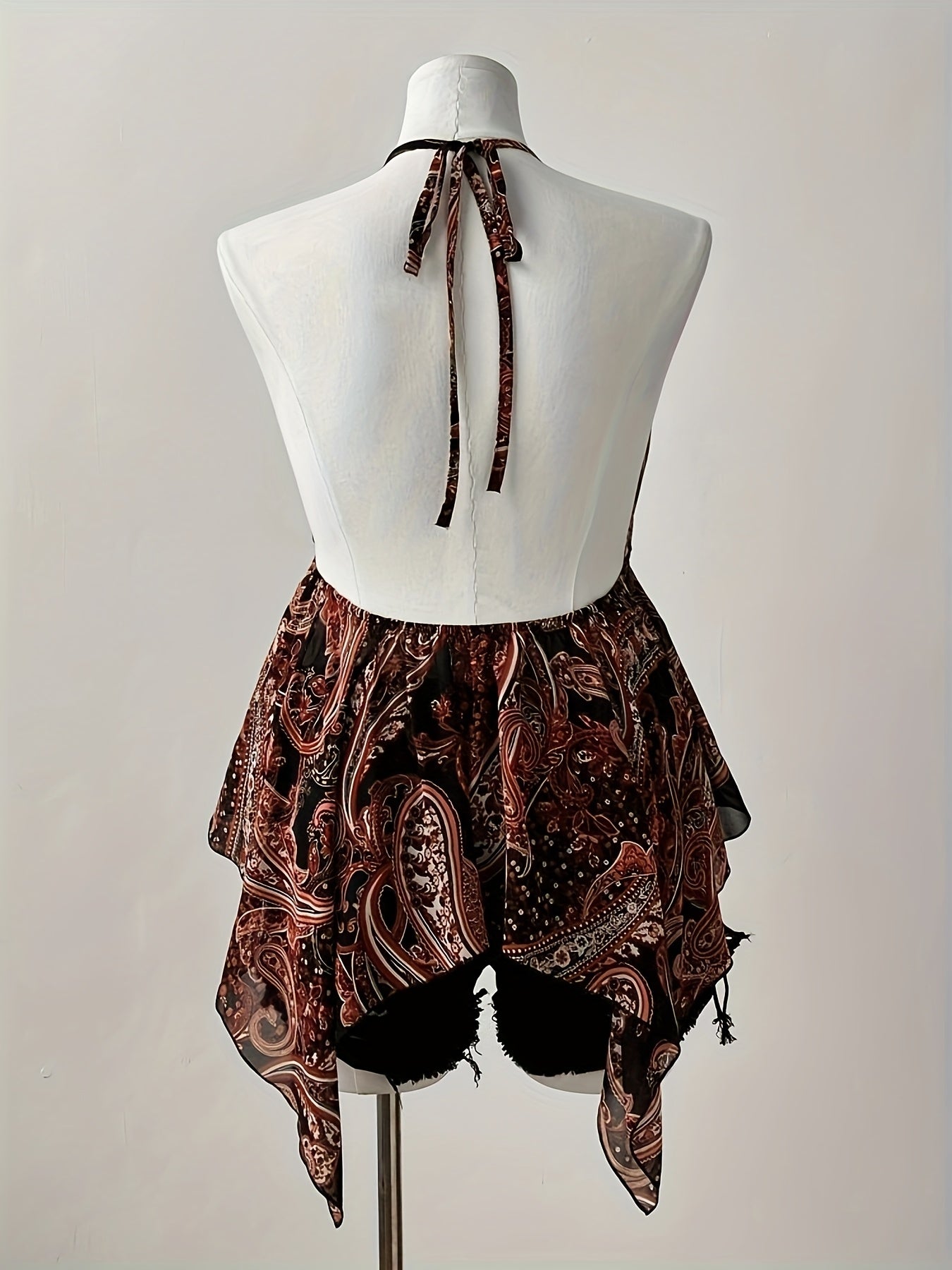 Plus Size Women's Beaded Spaghetti Strapless Top V-Neck Geometric Pattern