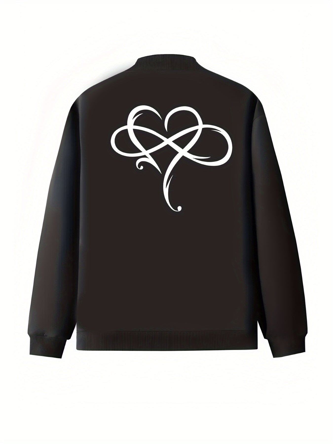 Plus Size Women's Black and White Baseball Collar Zip-up Jacket All-Season Outerwear