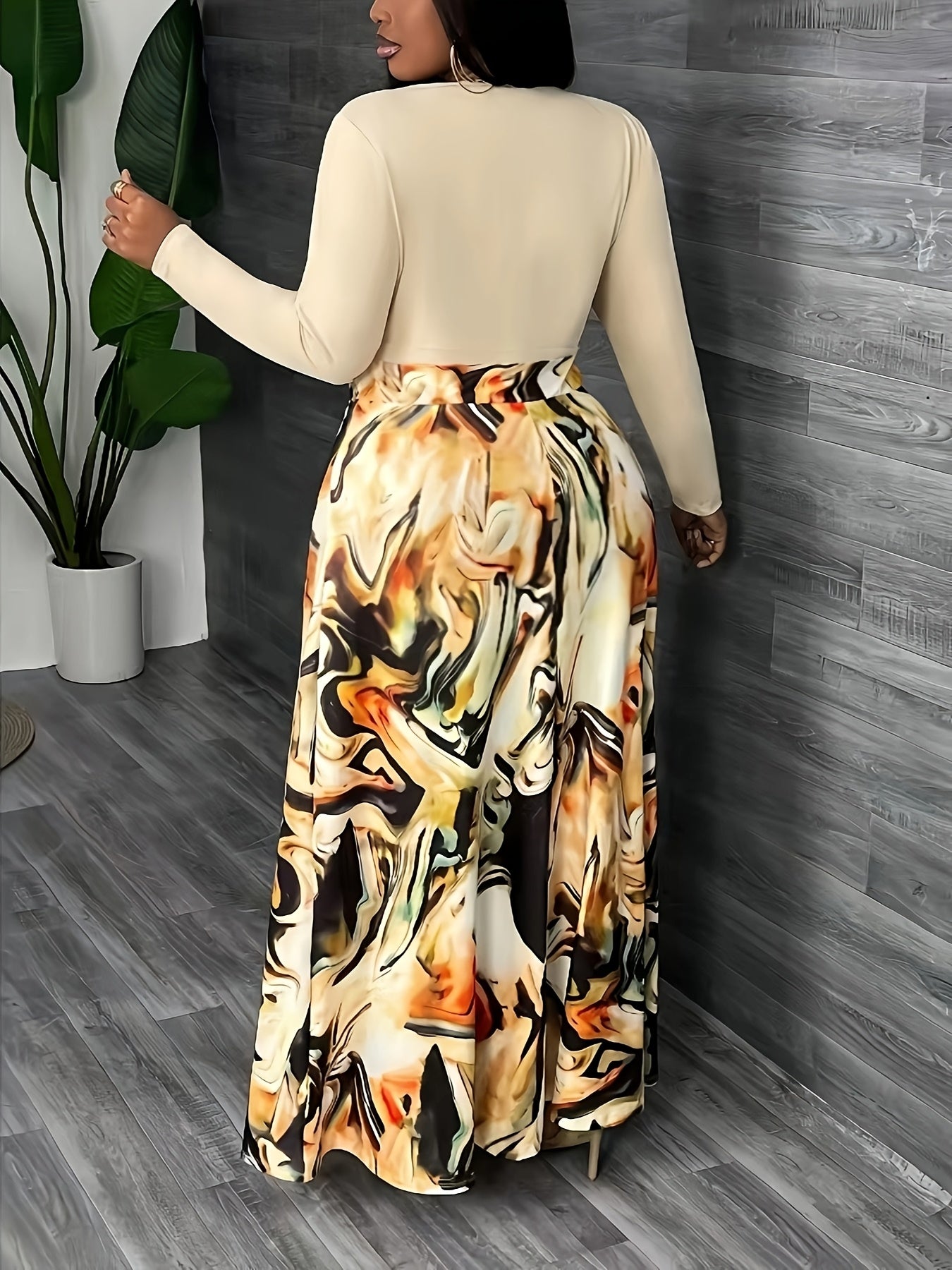 Plus Size Women's Flared Skirt Abstract Print High-Waisted A-Line Orange Black White