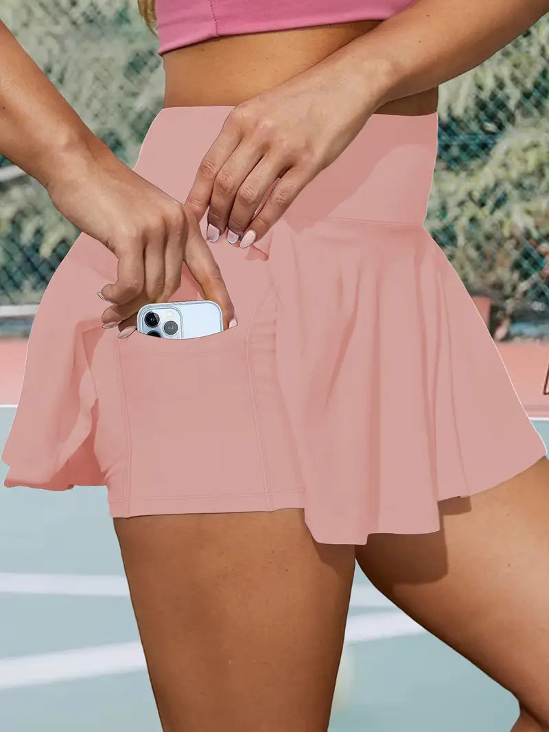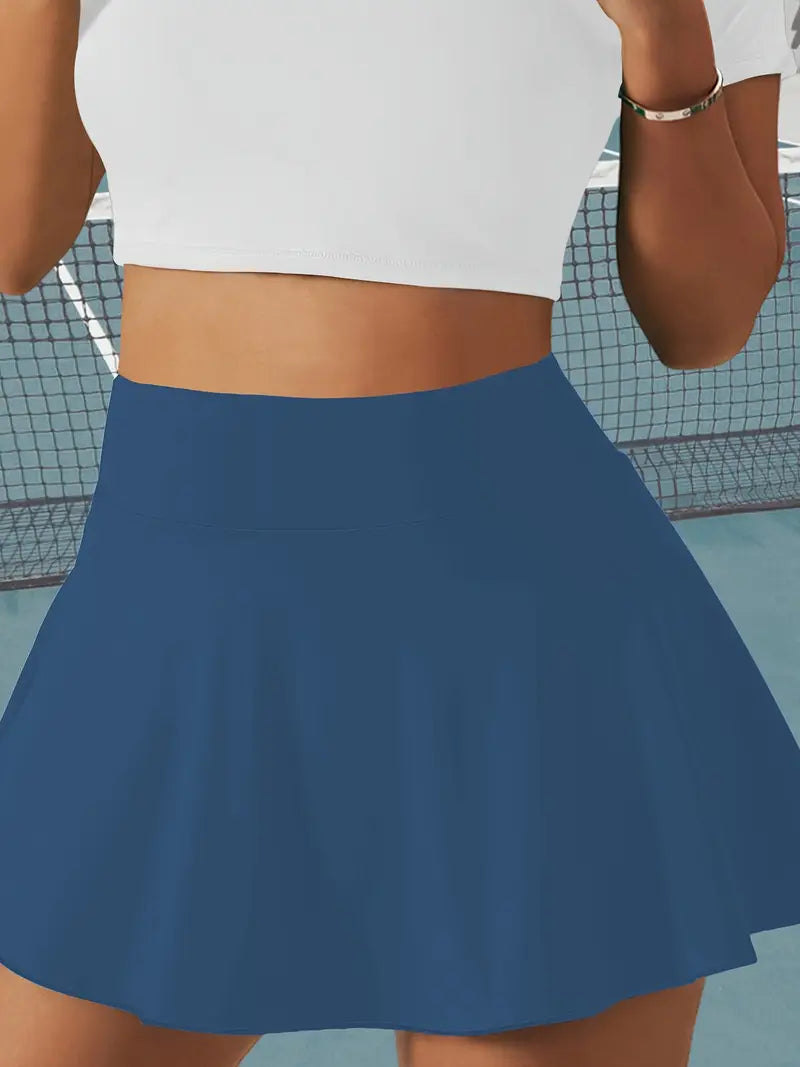 Plus Size Women's Flared Skirt with Pockets High-Stretch Machine Washable