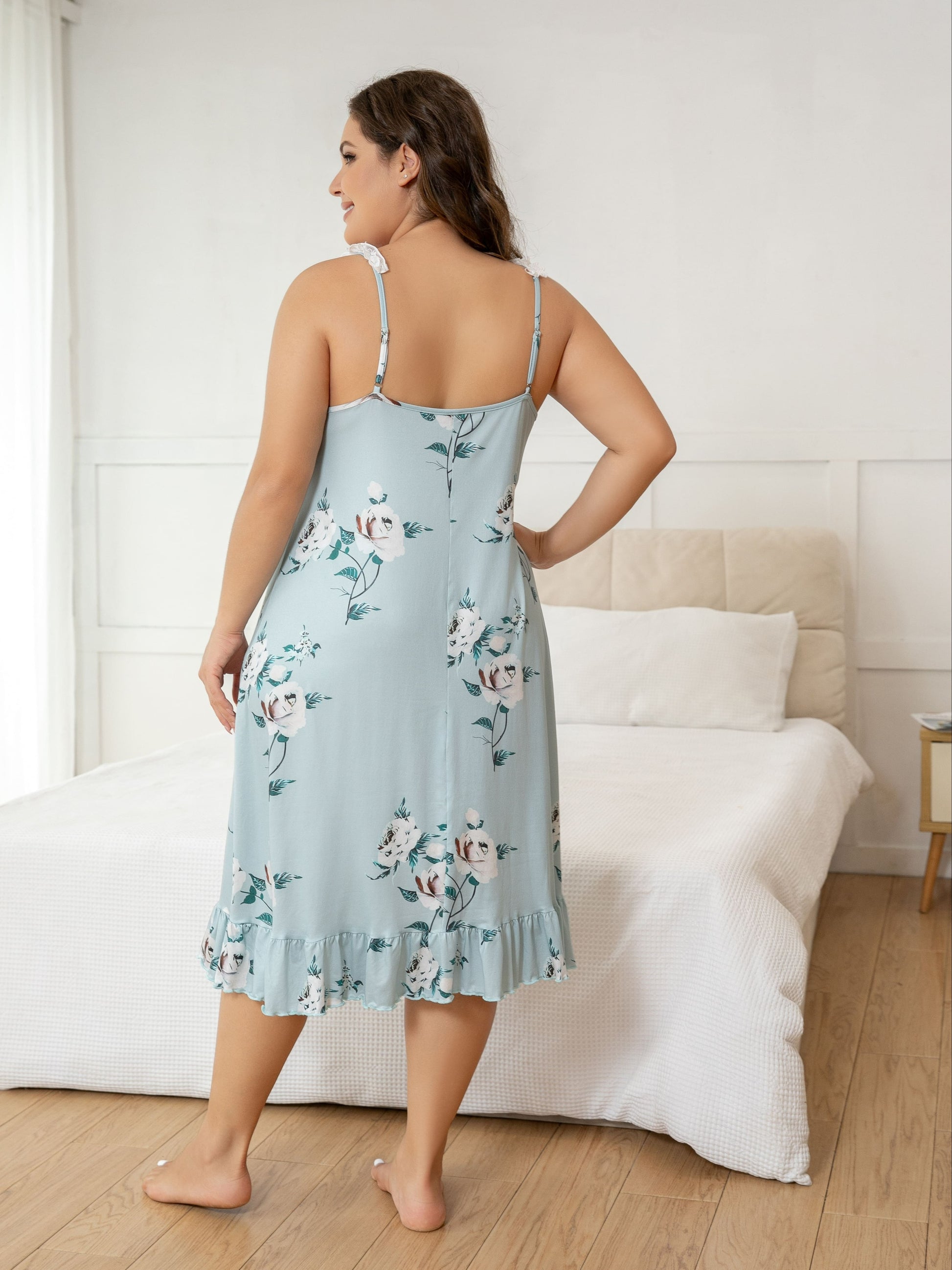 Plus Size Women's Floral Print Sleeveless Nightgown Sleep Dress Soft Summer Lounge