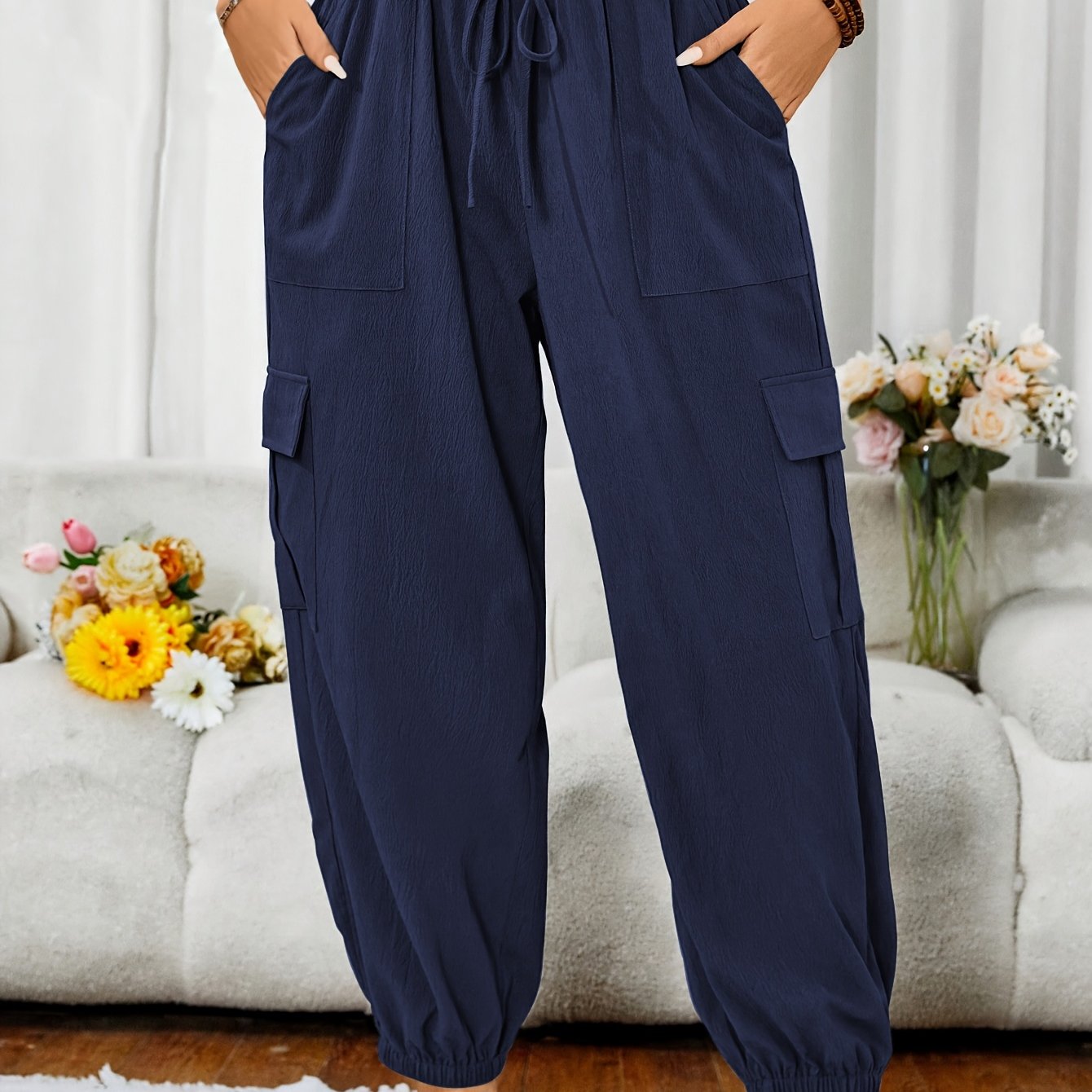 Plus Size Women's Jogger Pants Dark Grey Non-Stretchy Casual Lounge Trousers