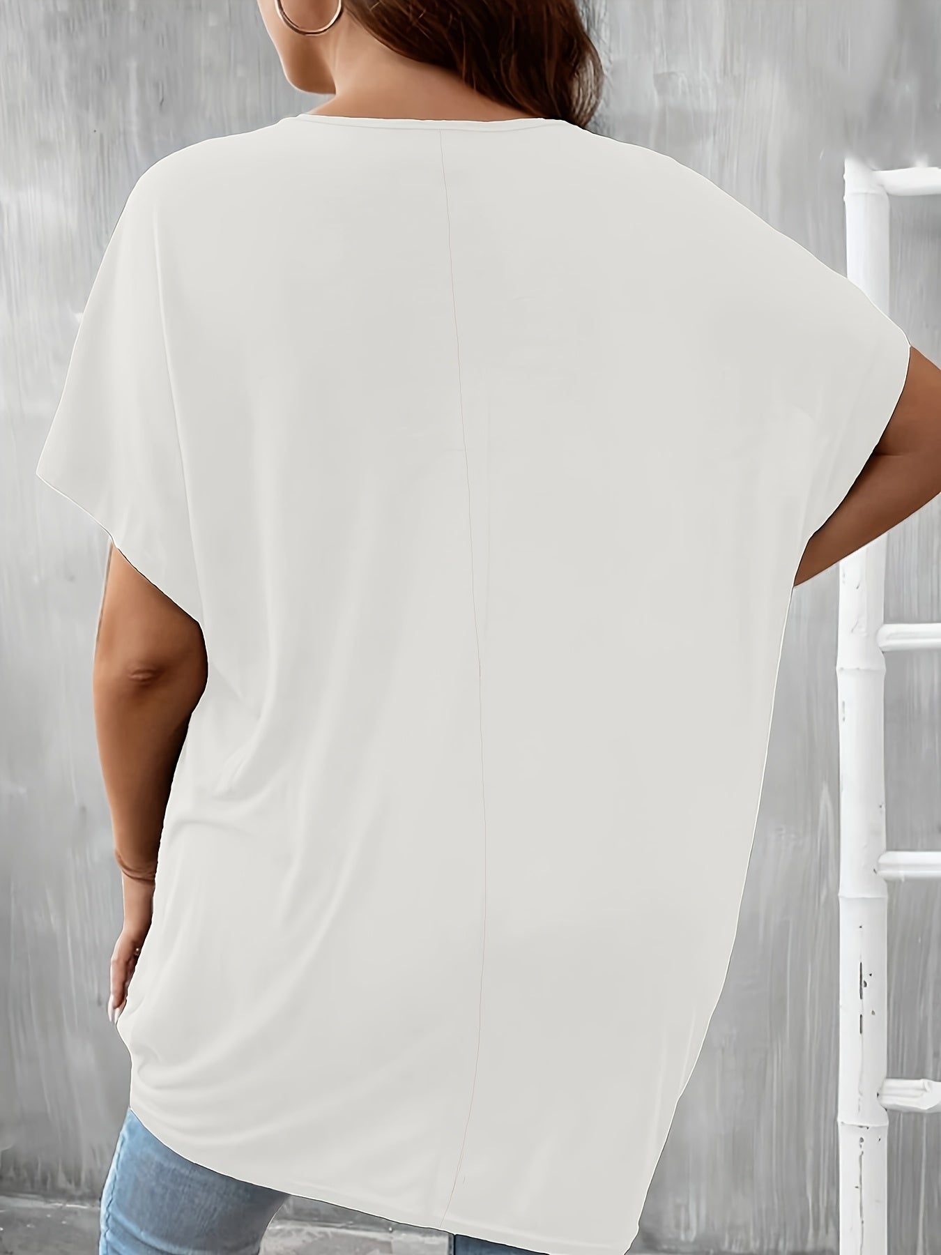 Plus Size Women's Loose Black Zipper Top Summer Classic Blouse