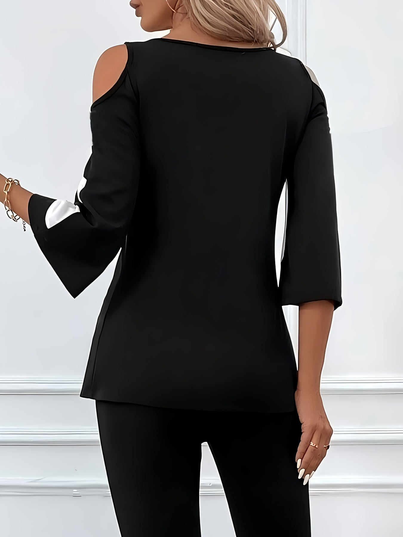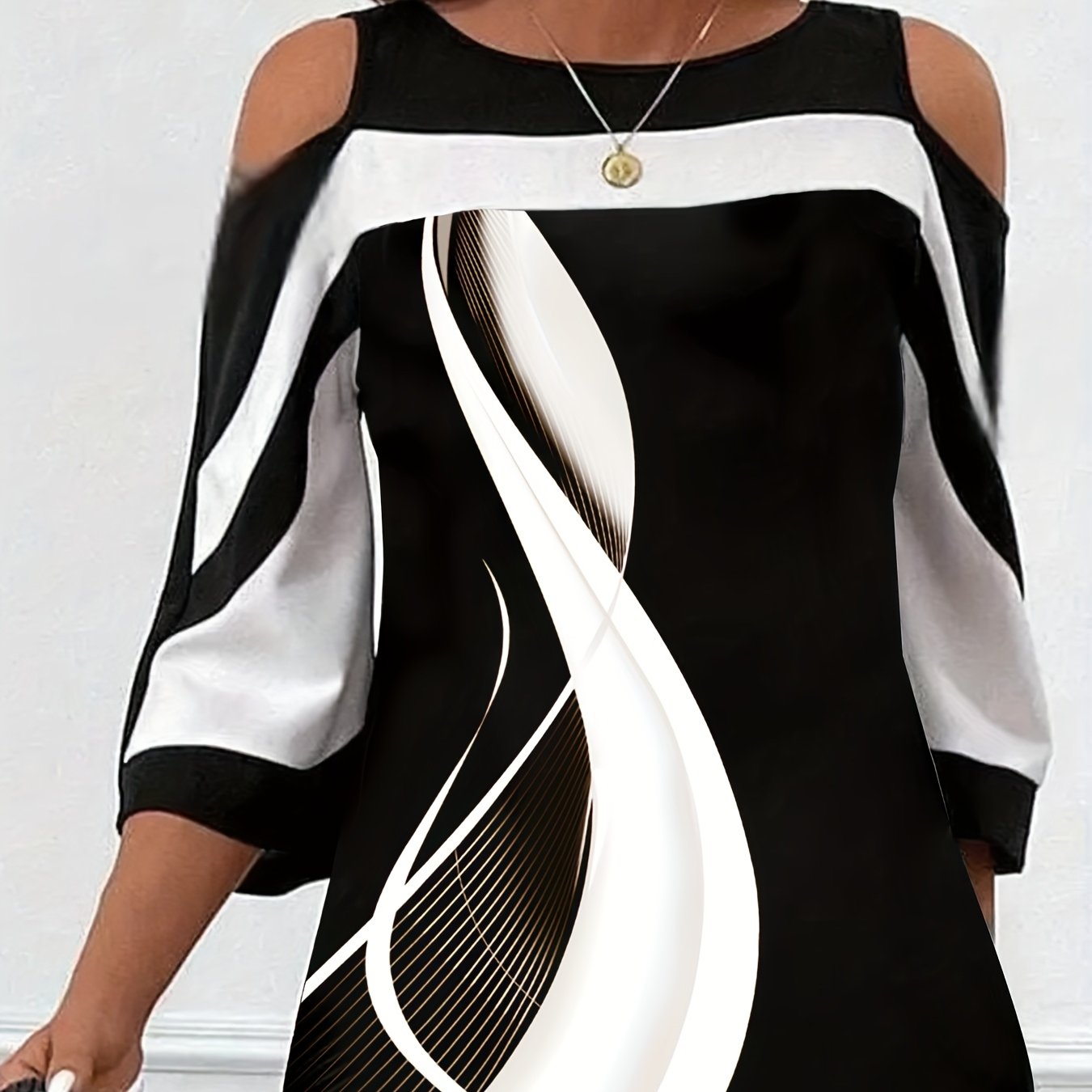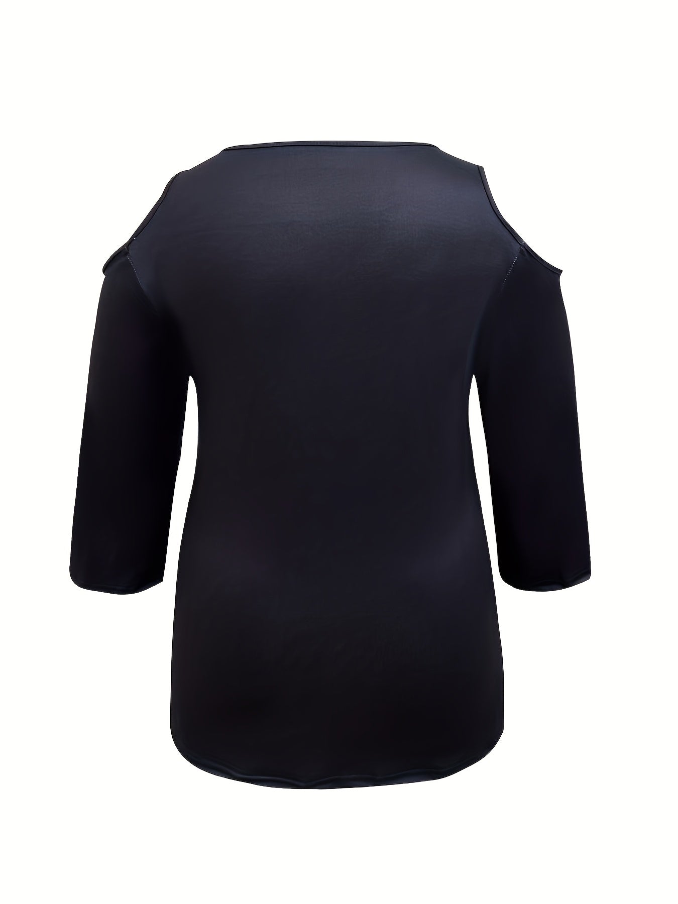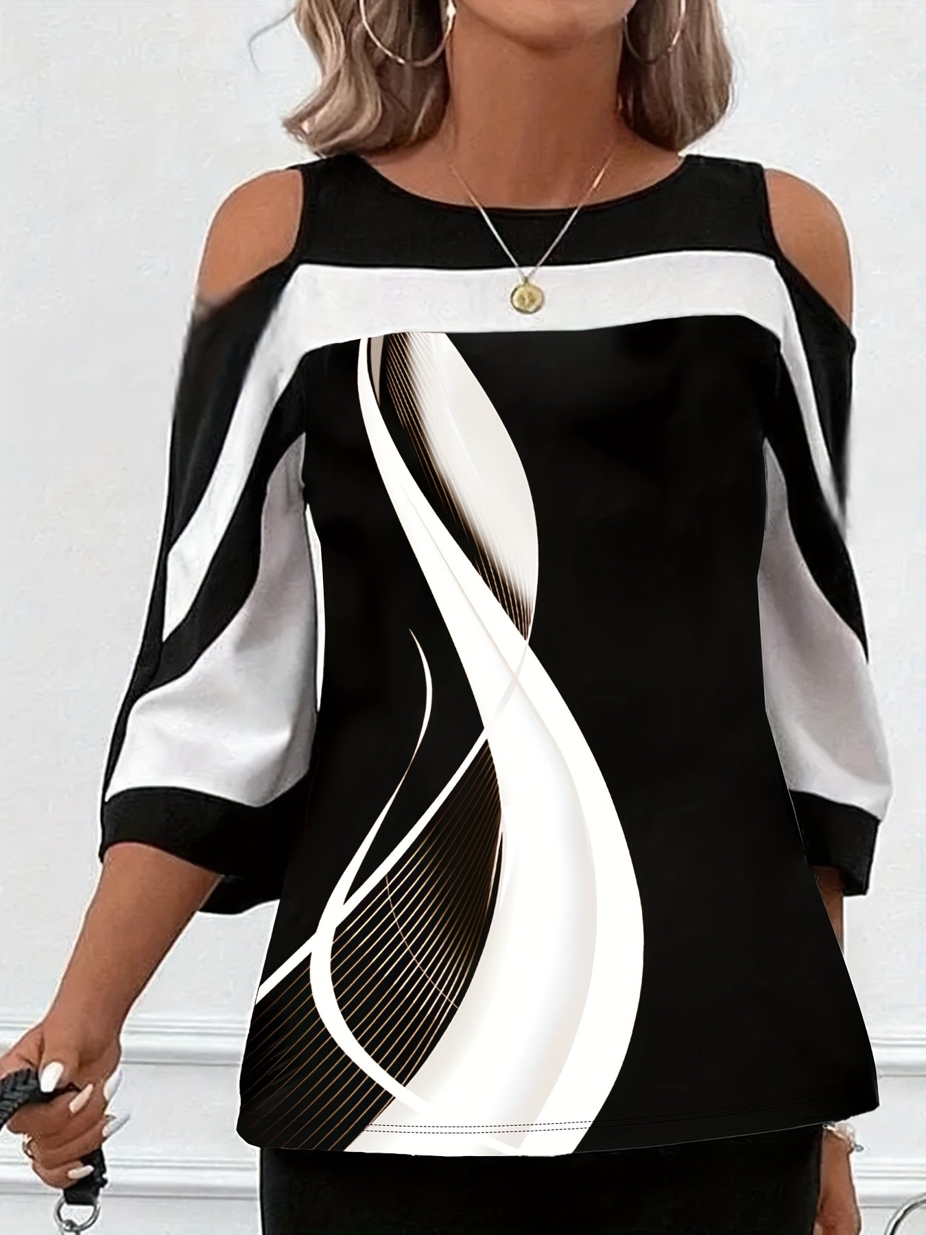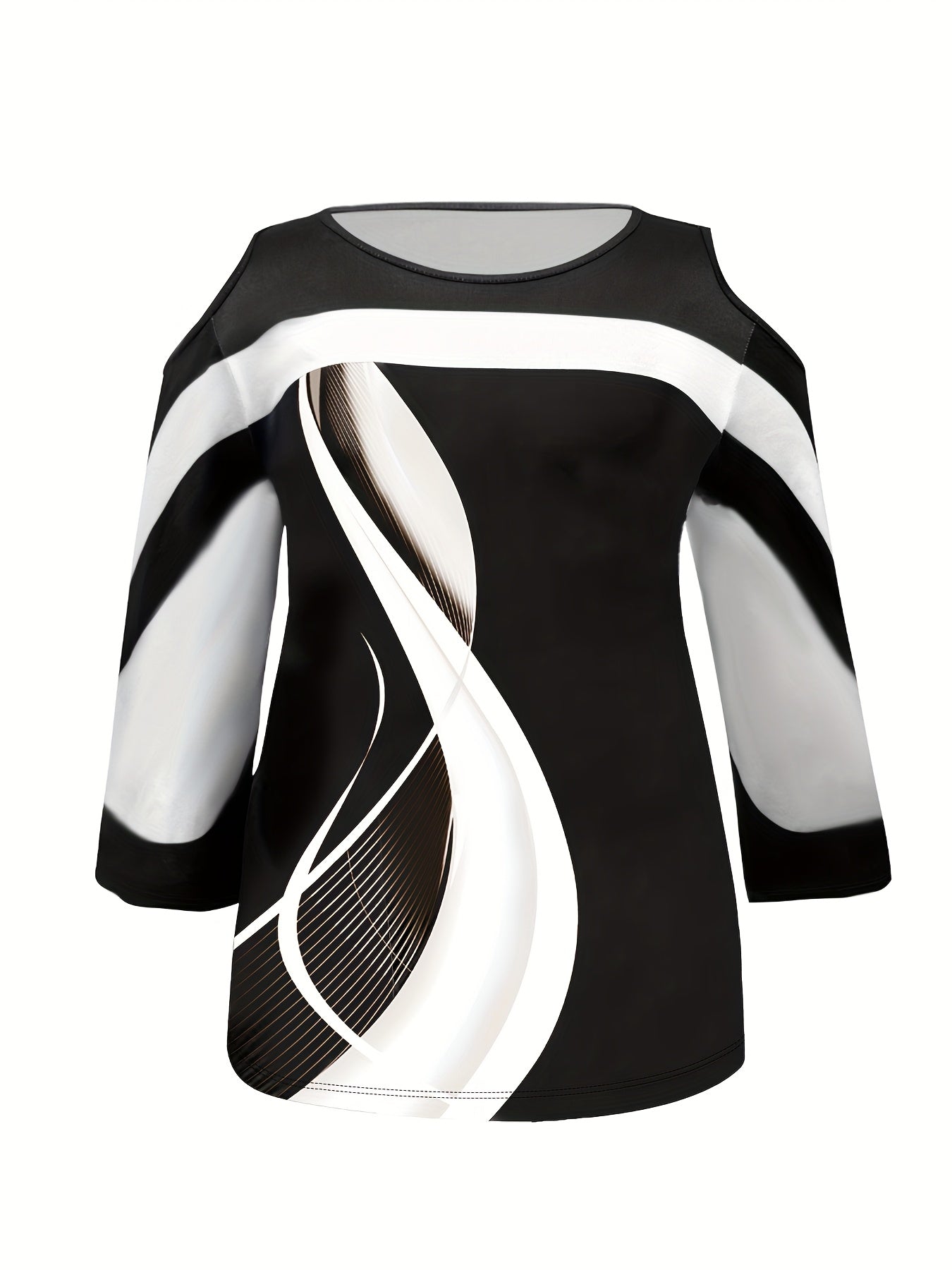 Plus Size Women's Off-Shoulder Floral Print T-Shirt Black White Summer Casual