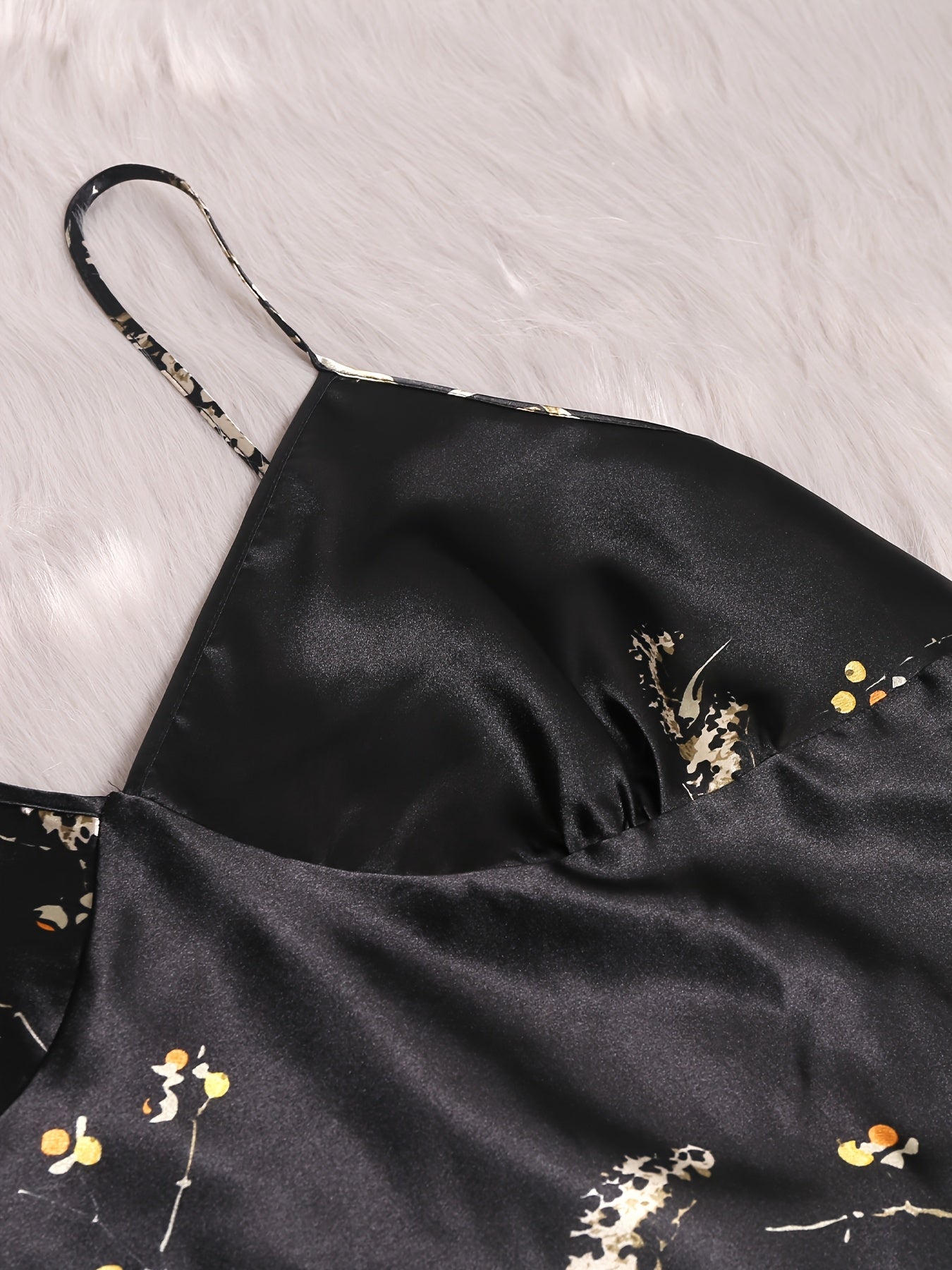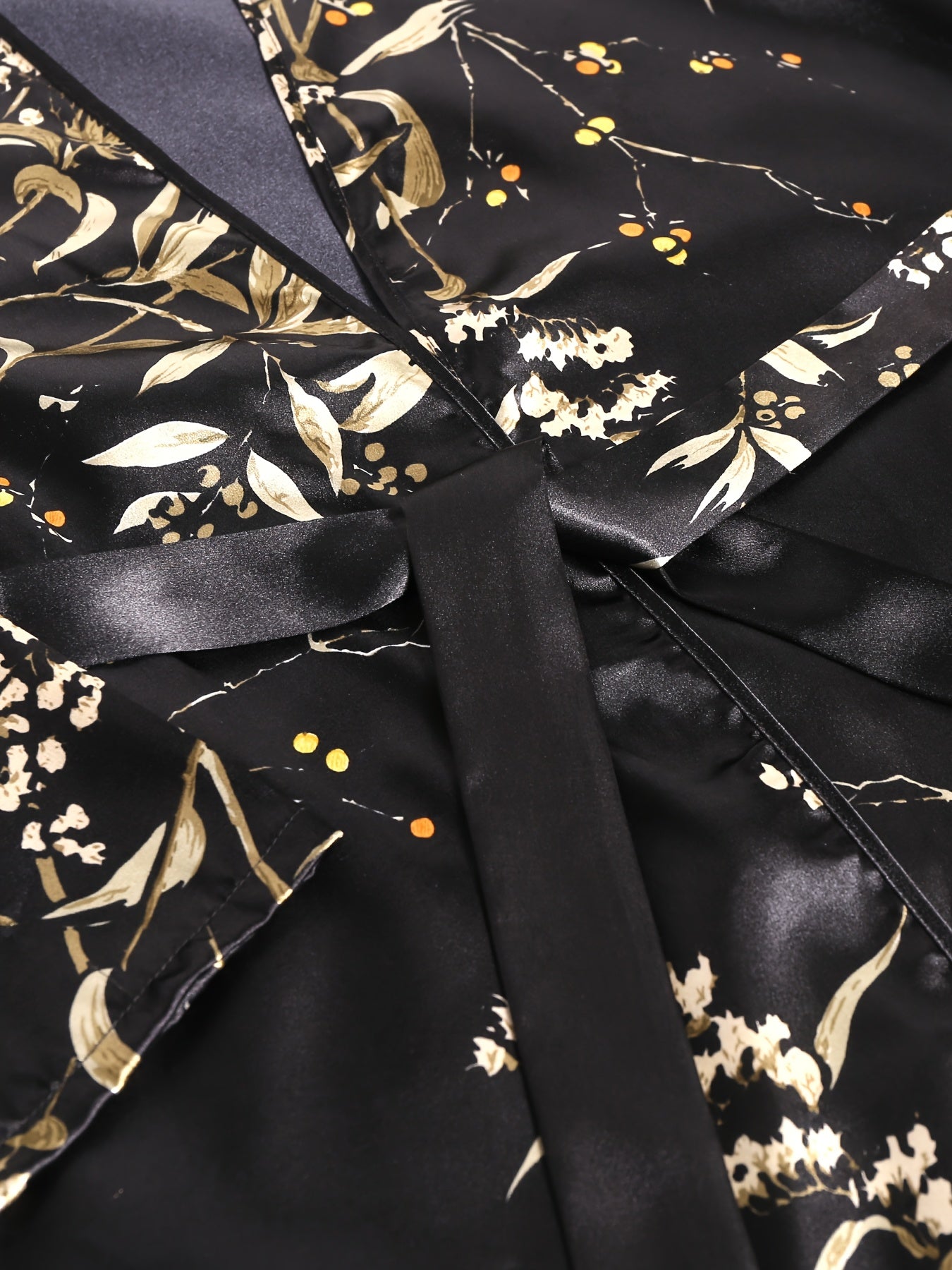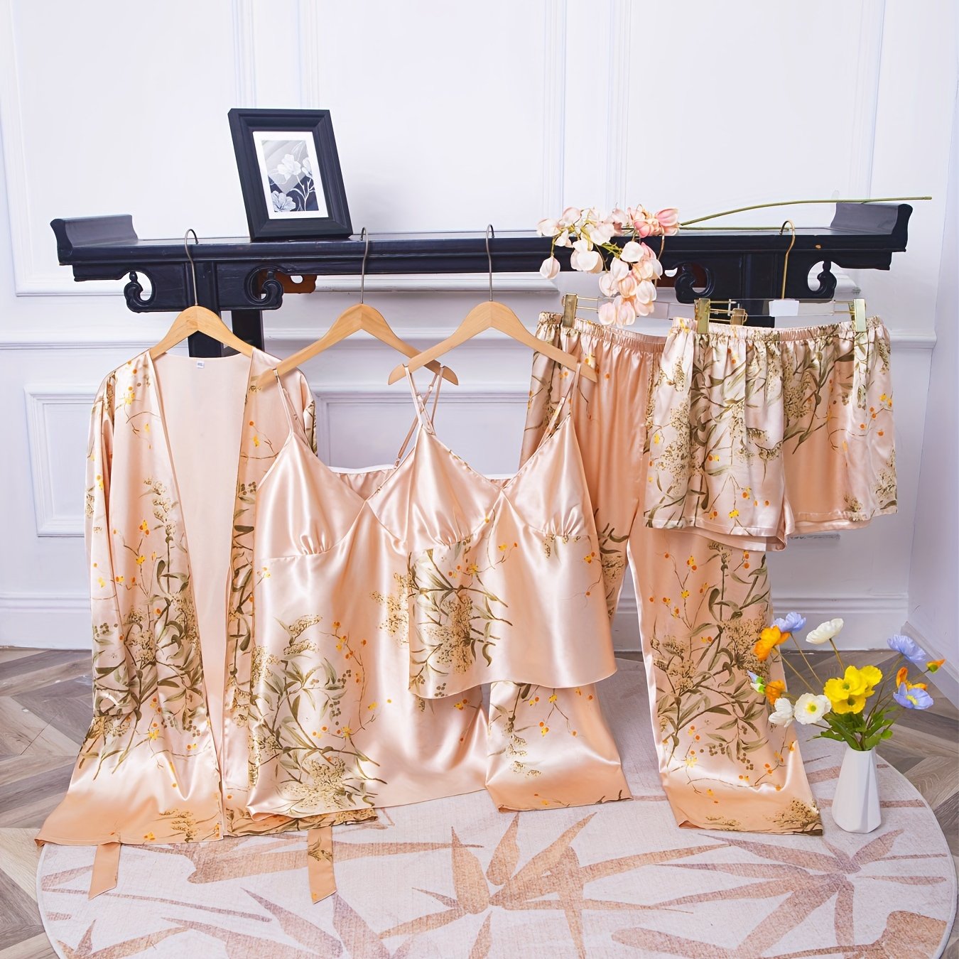 Plus-Size Women's Printed Loungewear Set with Camisole Dress Shorts Pants and Robe for Fall Winter