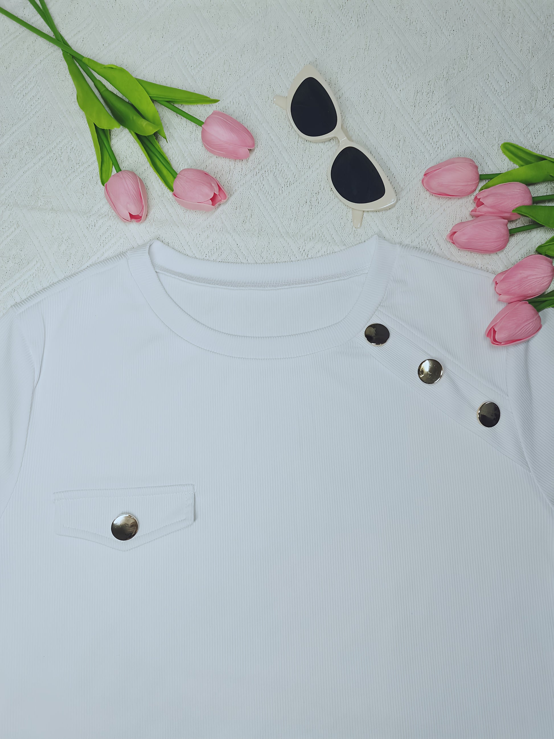 Plus Size Women’s Semi-Sheer Short Sleeve Round Neck T-Shirt for Summer, Work or Date