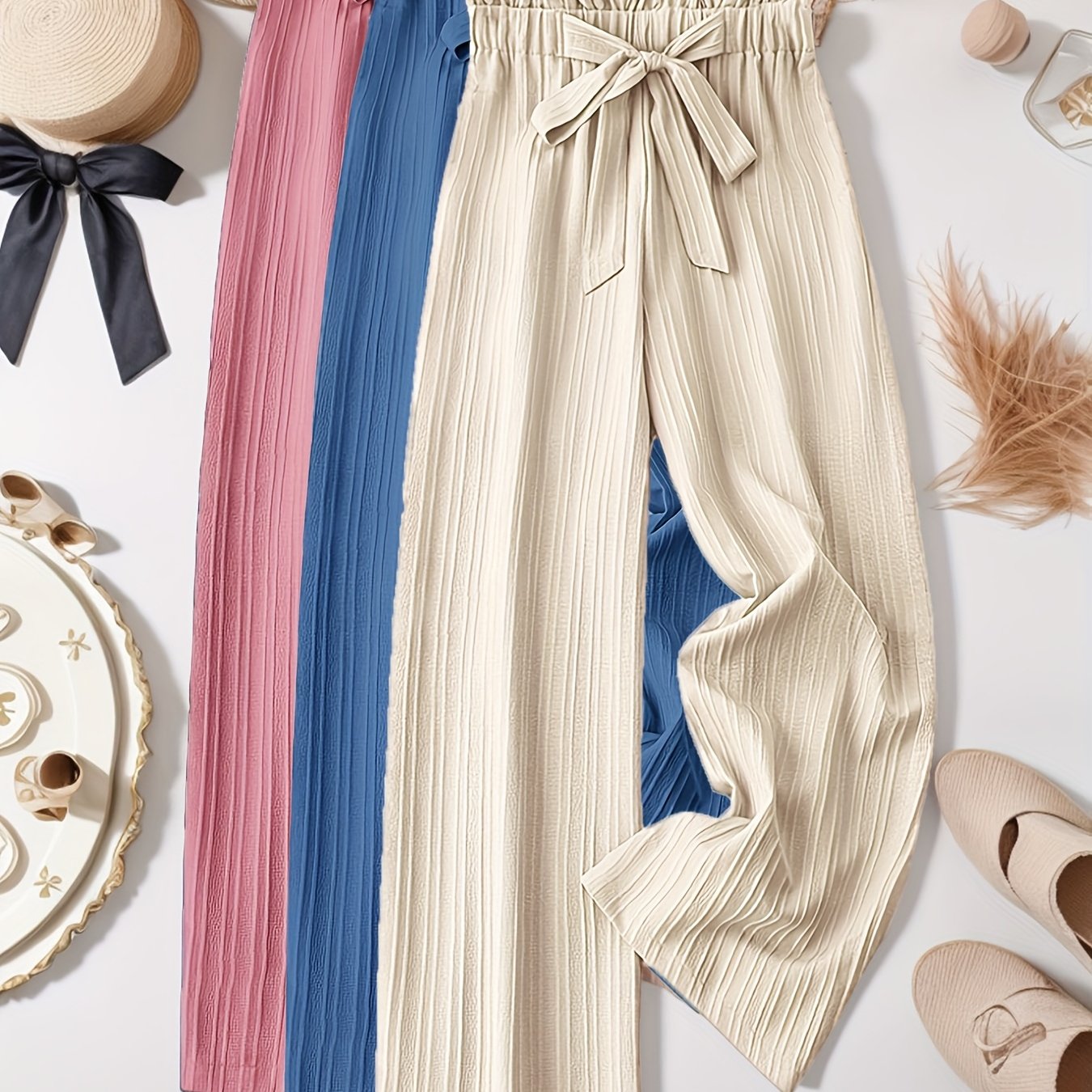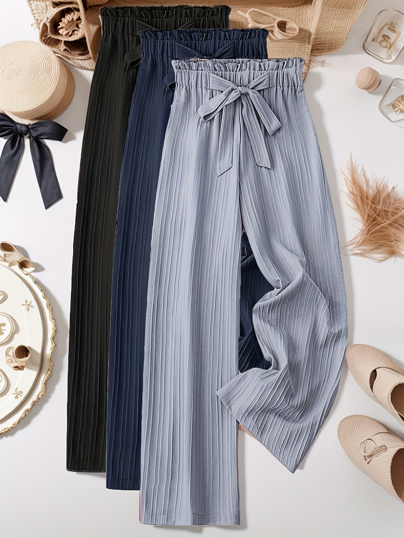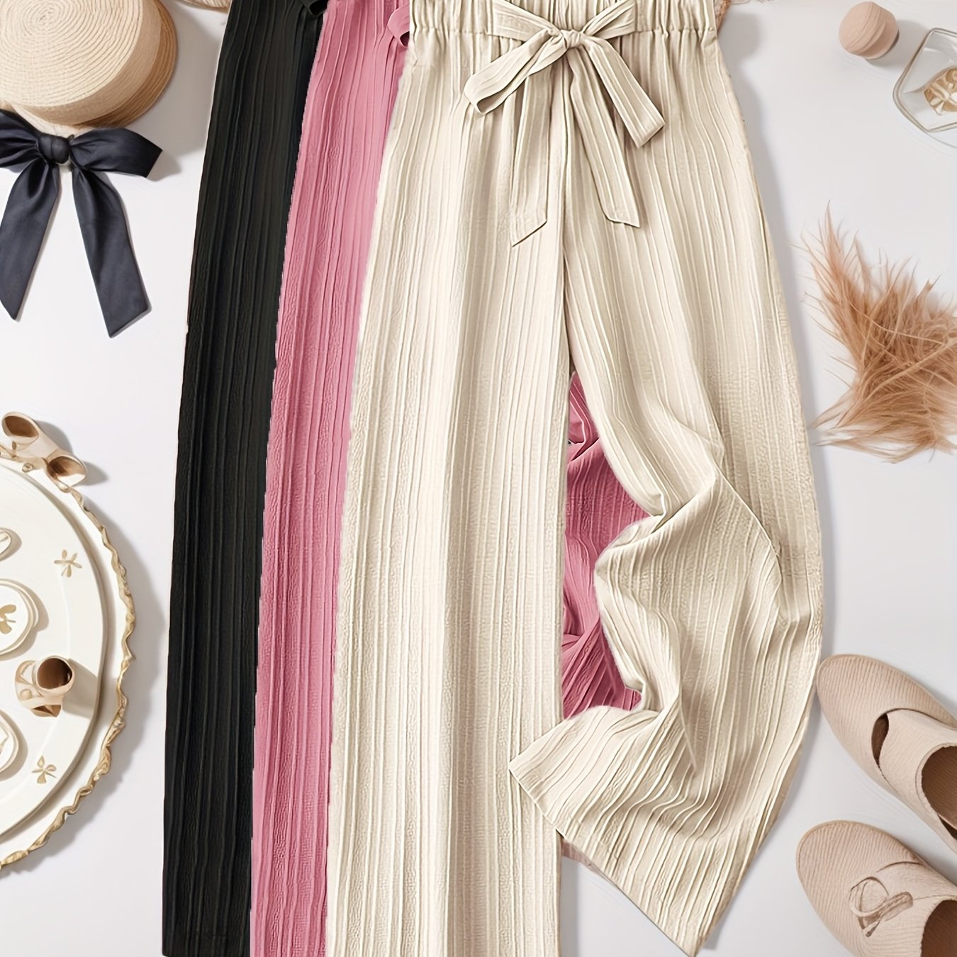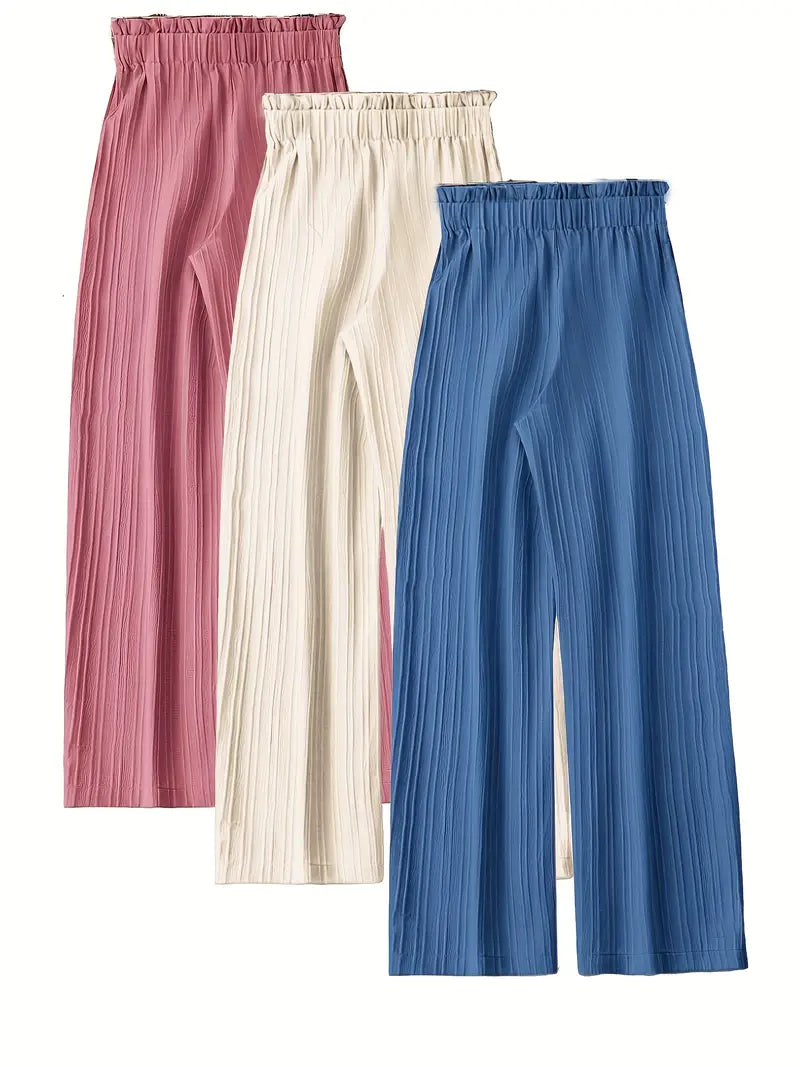 Plus Size Women's Wide-Leg Pants 3-Pack Non-Stretch Black Pink Beige Formal Casual