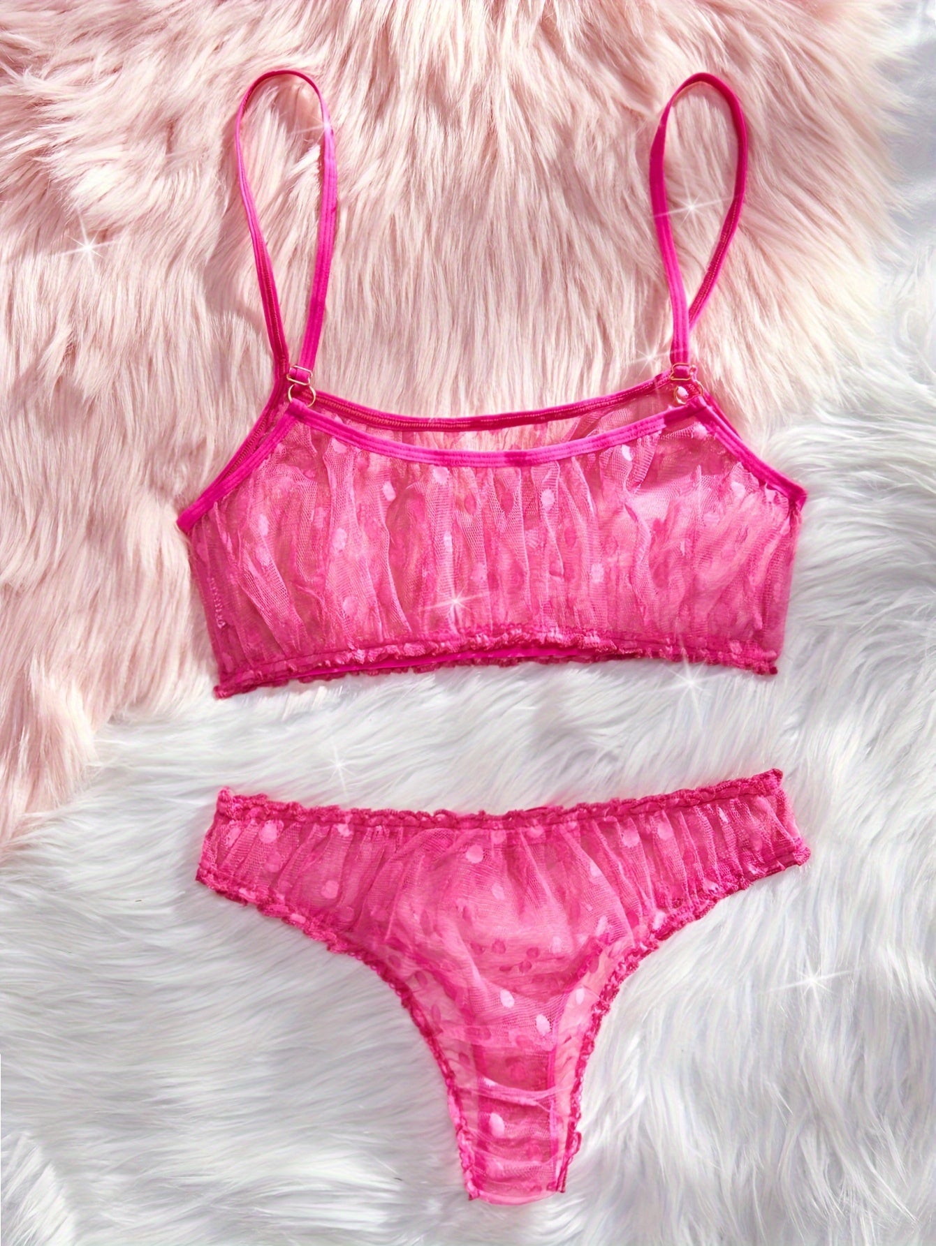Polka Dot Mesh Lingerie Set with See-Through Unlined Bra and Bow Tie Thong Women’s Sexy Underwear
