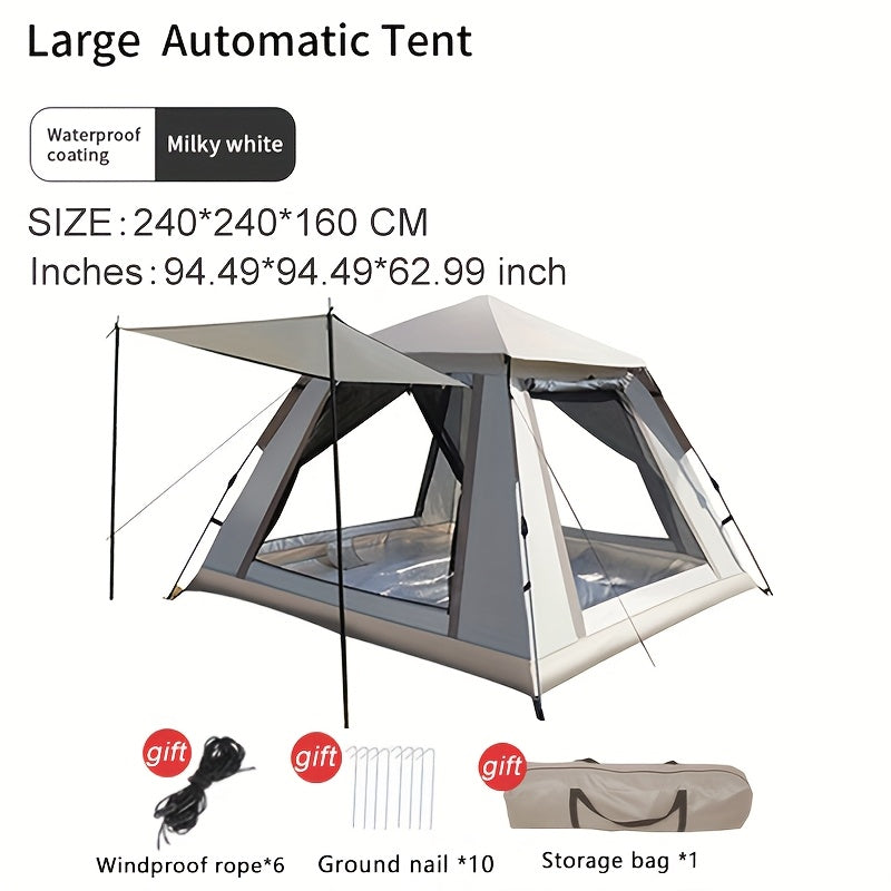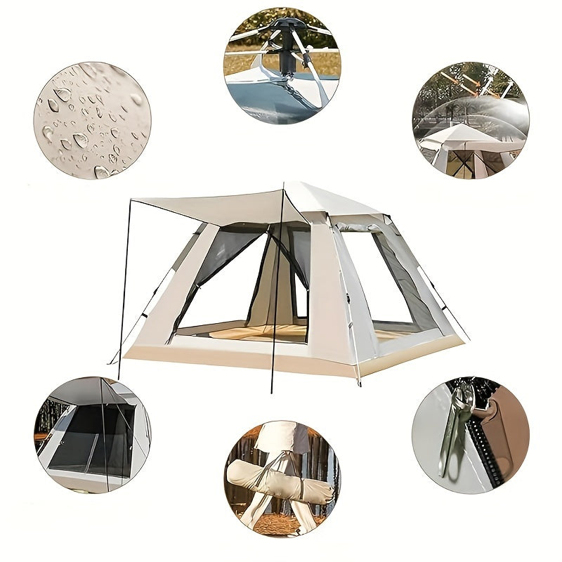 6-Person Family Camping Tent with Automatic Setup Ventilated Sunshade All-Season Polyester