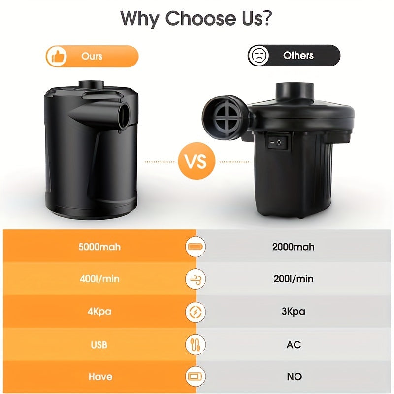 Portable Electric Pump for Swimming Pool and Air Mattress Rechargeable 5200mAh Black