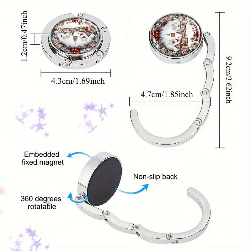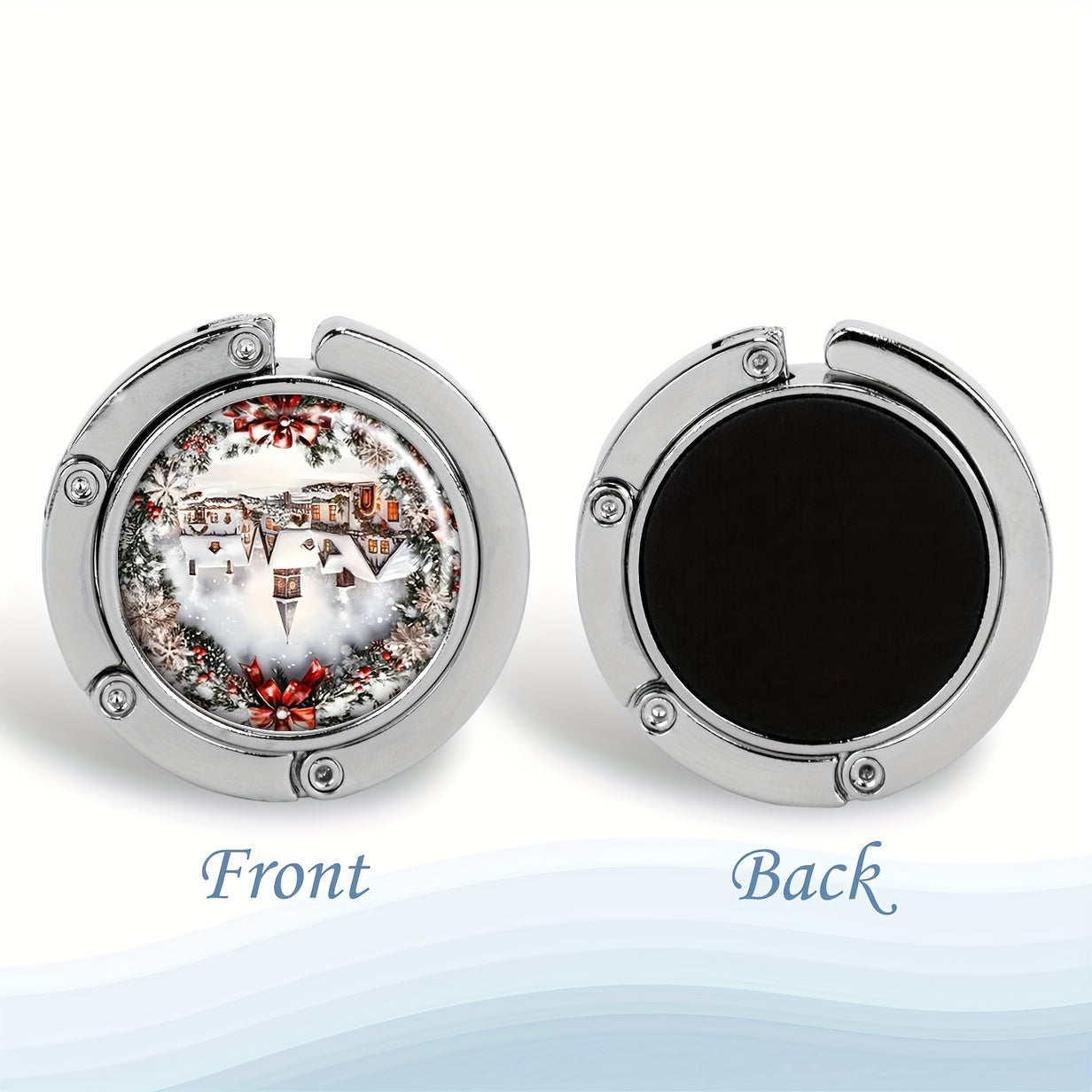 Portable Folding Purse Hook Table Accessory with Christmas Village Snow Scene Design