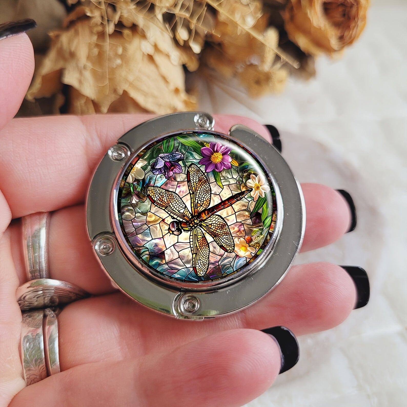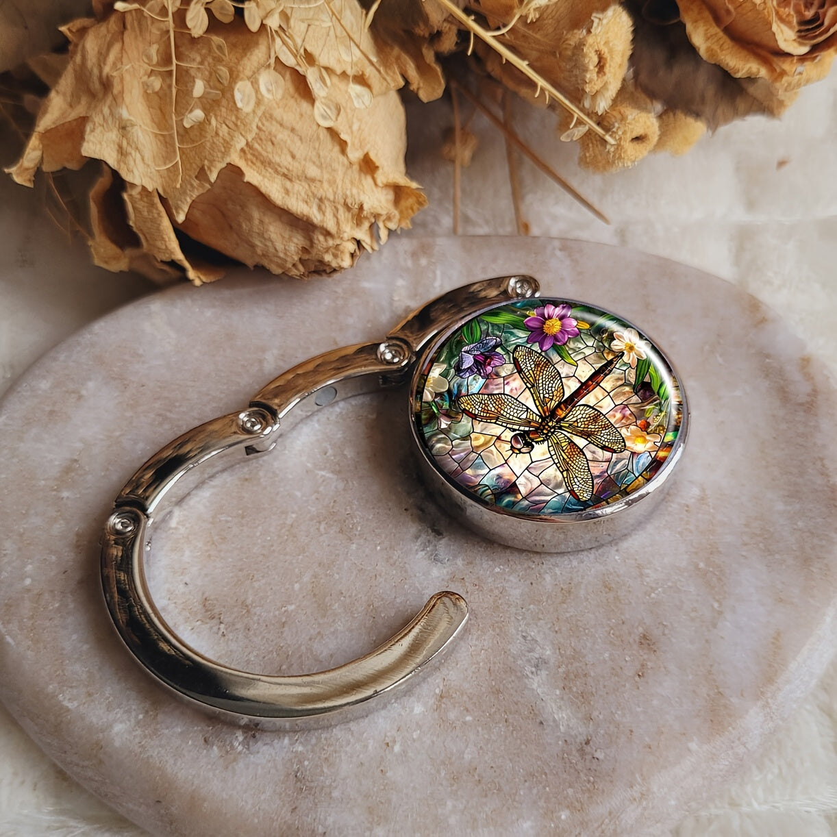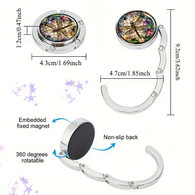 Portable Handbag Hook for Tables with Dragonfly Design Metal Bag Holder for Women