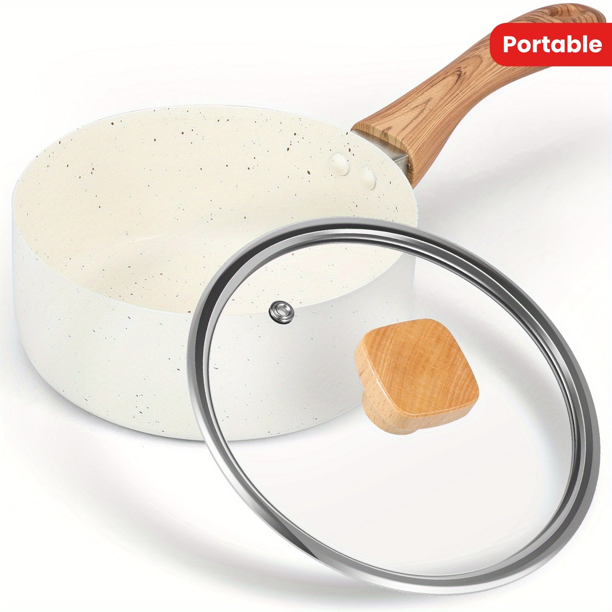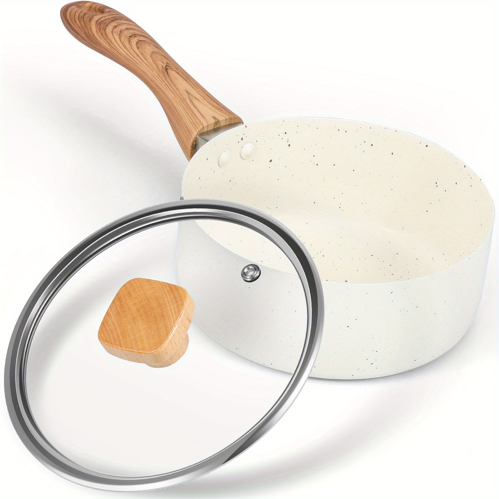 Stainless Steel Induction Sauce Pot 1.2L Non-Stick Glass Lid Dishwasher Safe