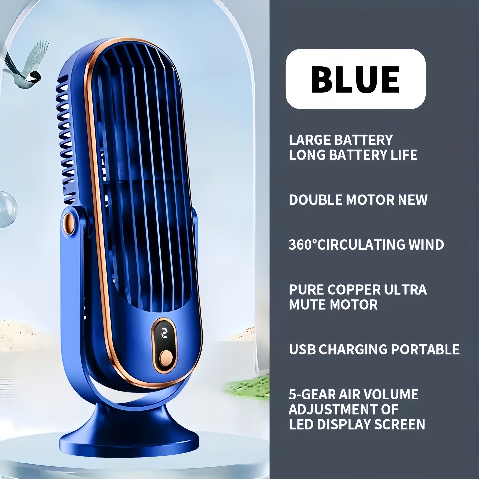 Portable USB Desktop Fan with Dual Blades, 5 Speeds, 360° Rotation, Rechargeable Battery