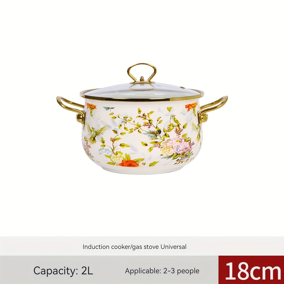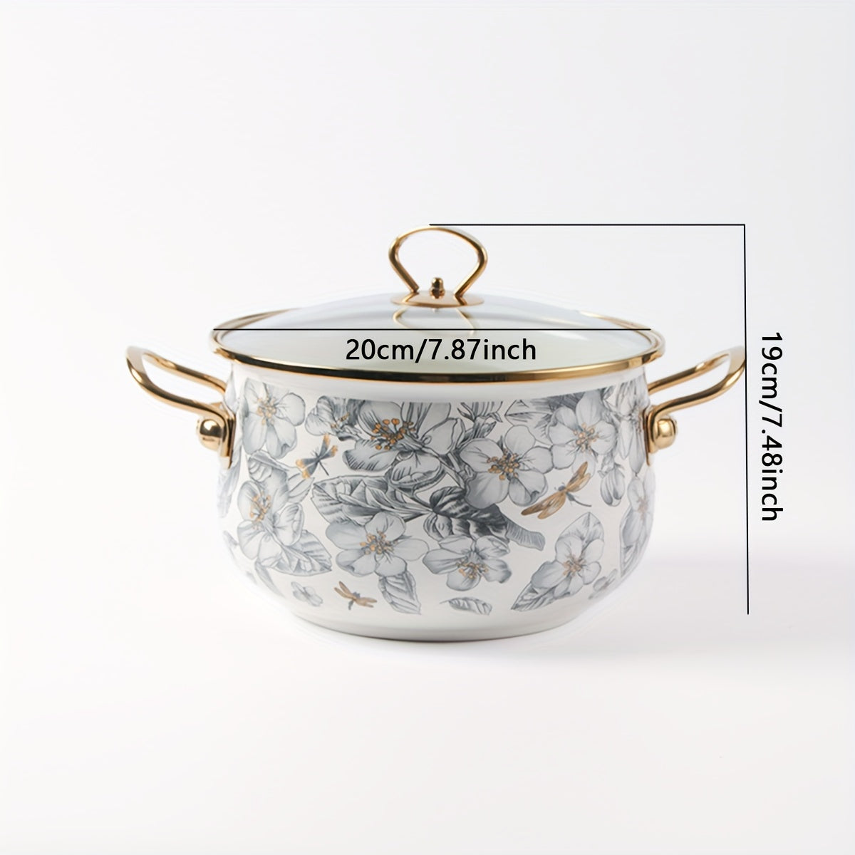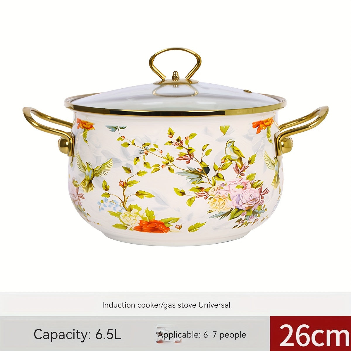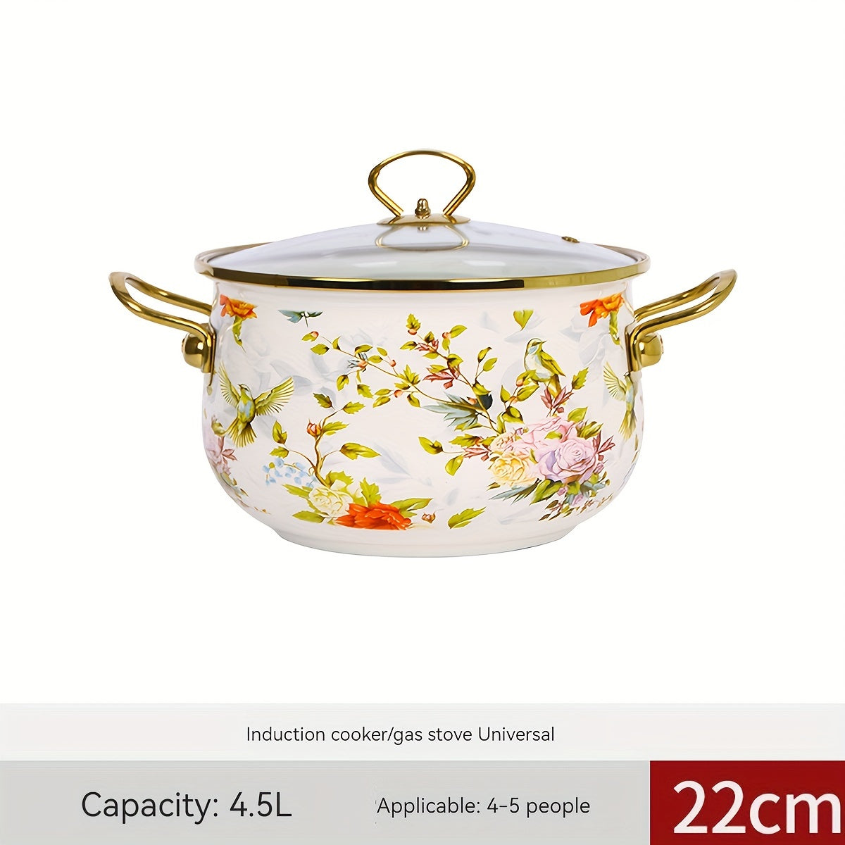 Enamel Soup Pot with Dual Handles for Stewing and Boiling, Gas and Electric Compatible