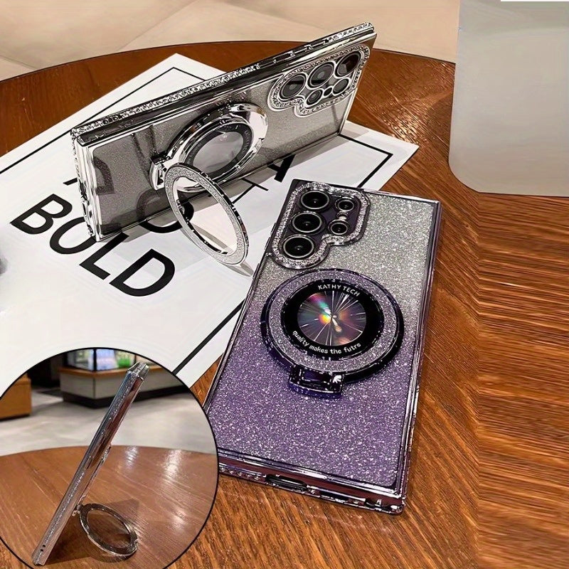 Magnetic Rhinestone Glitter Case for Samsung Plus TPU Plating with Holder and Wireless Charging