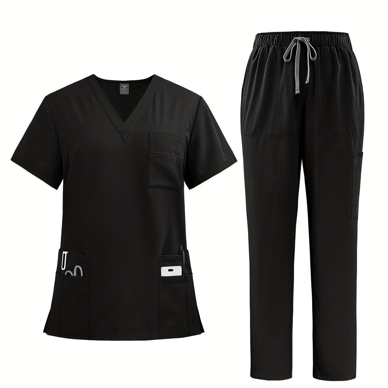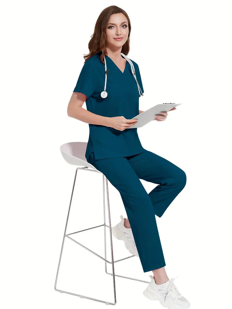 Polyester Spandex Scrubs Set with V-Neck Shirt and Straight-Leg Pants for Nurses and Surgeons