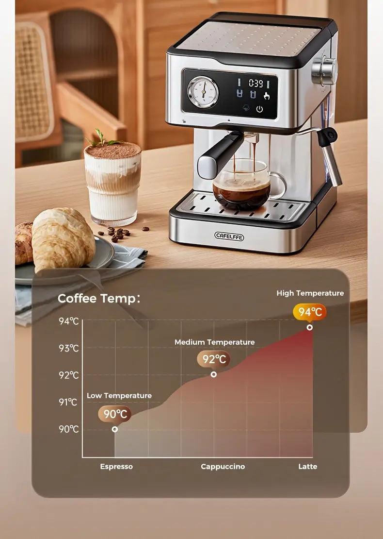 Programmable Espresso Machine with 20 Bar Pump LCD Touchscreen Stainless Steel Milk Frother 1.5L Water Tank