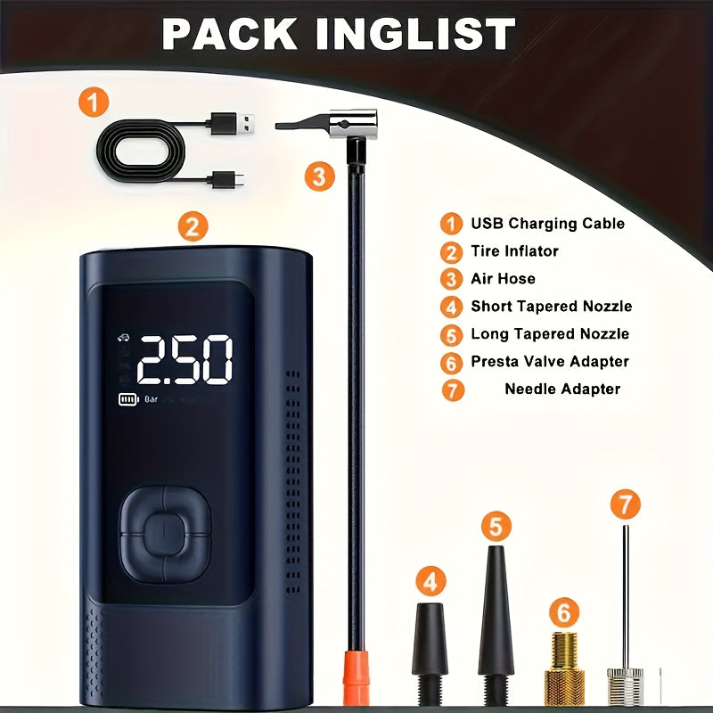 Rechargeable LED Tire Inflator for Cars Bikes Motorcycles Sports Balls Portable USB