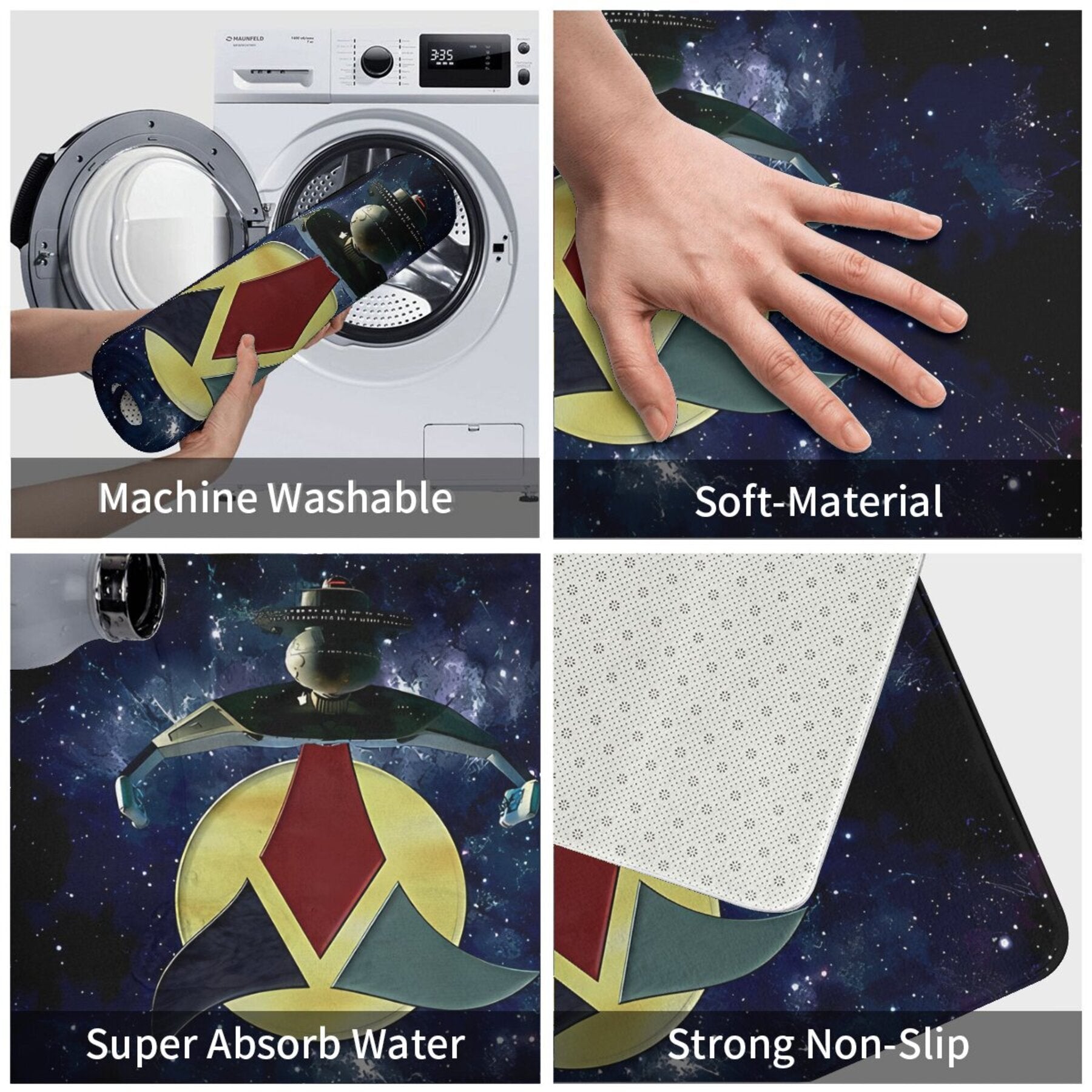 Rectangular Polyester Welcome Mat for Home Kitchen Non-Slip Machine Washable Doormat
