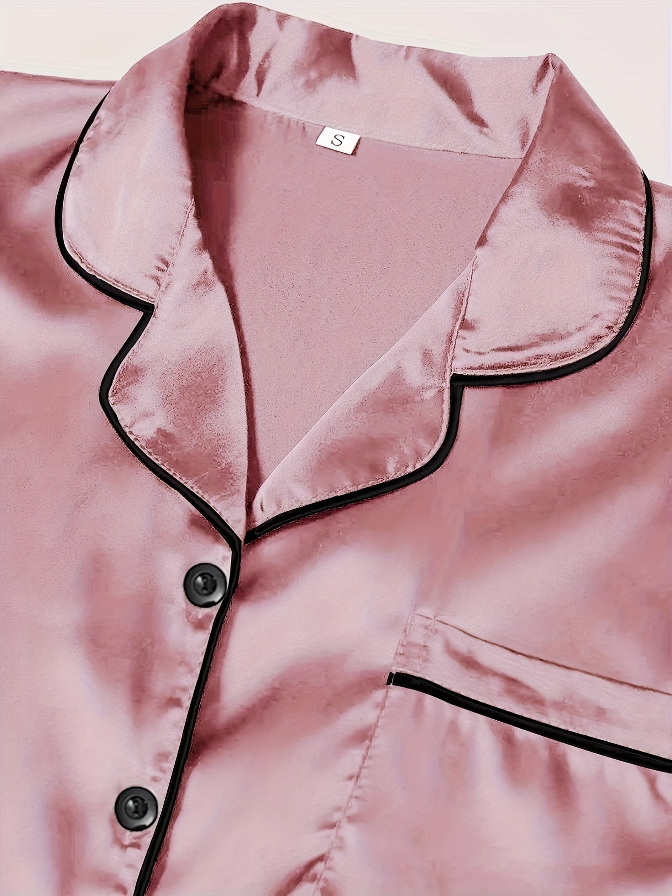 Women's Satin Pajama Set Short Sleeve Button Top Shorts or Pants Casual Sleepwear