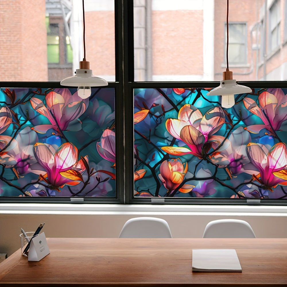 Reusable Floral Stained Glass Window Film Static Cling Rectangular Dull Finish