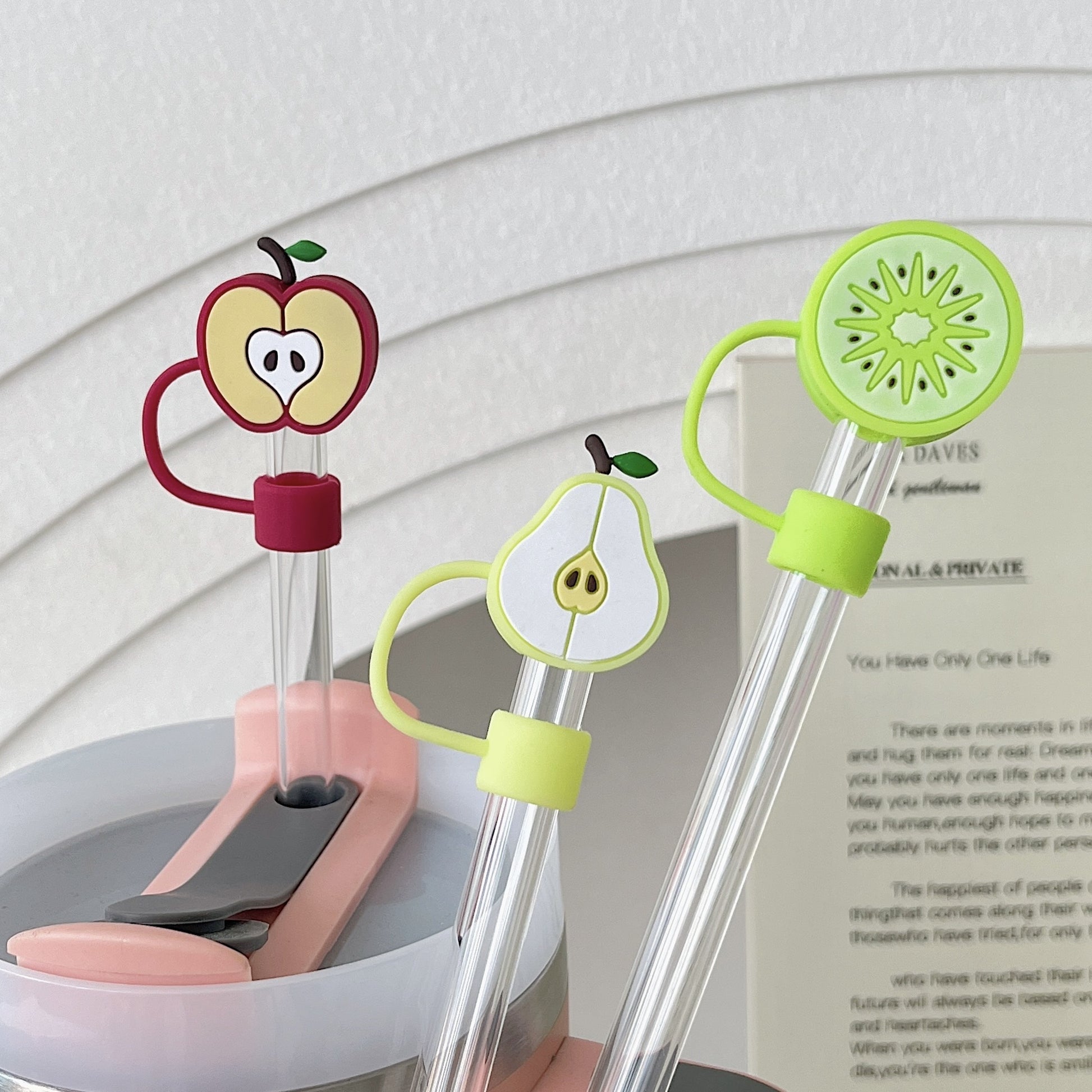 Reusable Silicone Straw Covers for Cups, Fruit and Sunflower Design, Dustproof