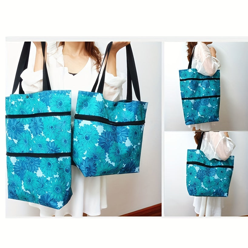 Reusable Shopping Cart with Wheels Large Capacity Foldable Oxford Cloth Green