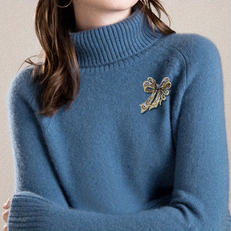 Rhinestone Bow Brooch Pin Vintage-Inspired Jewelry for Dresses Coats Bags