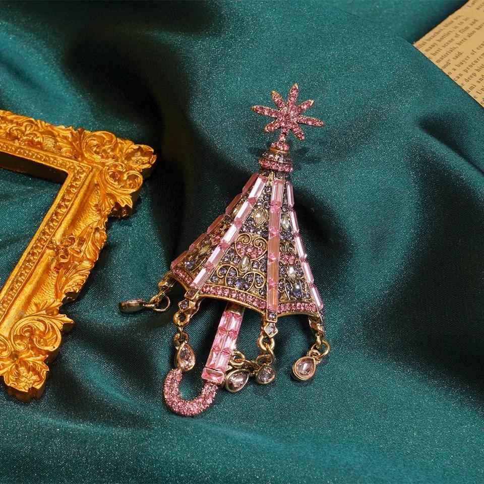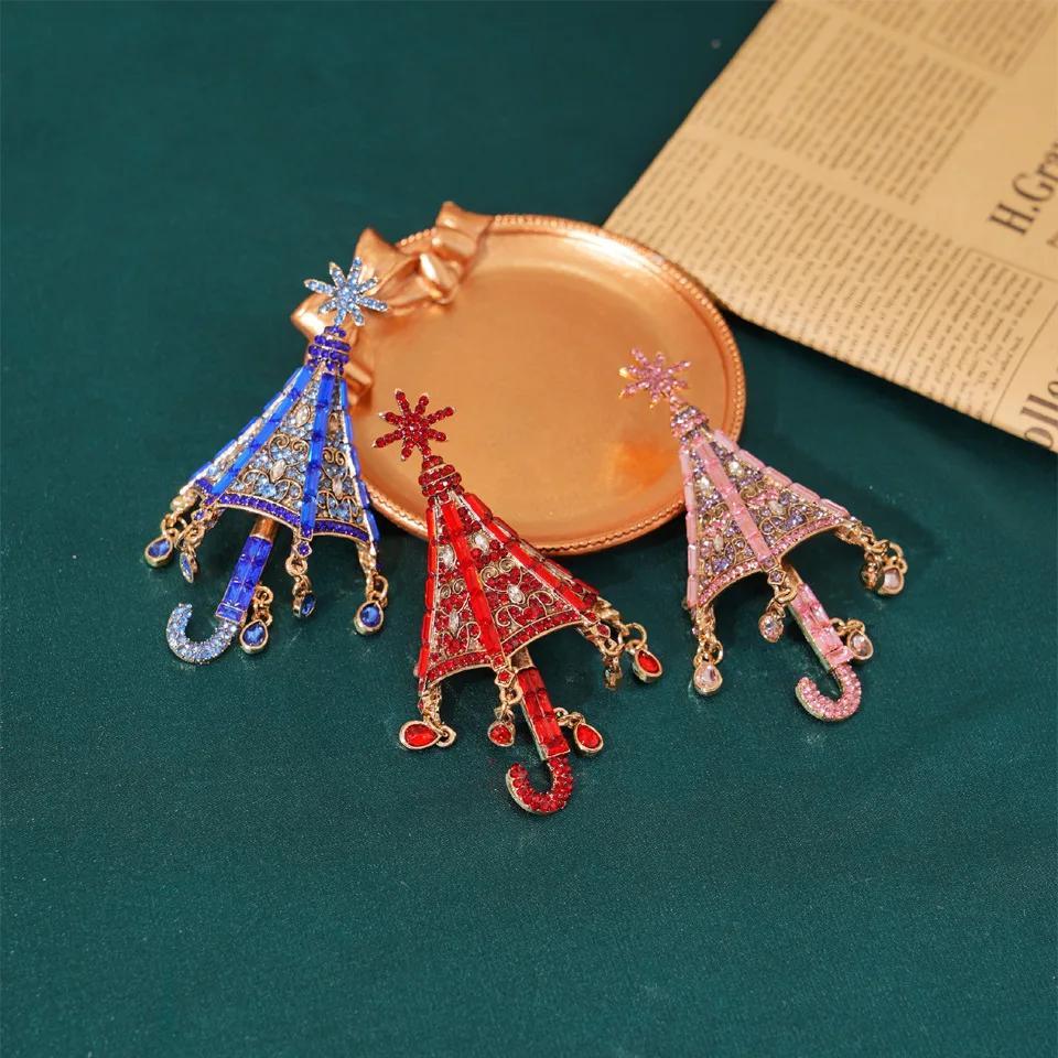 Elegant Rhinestone Umbrella Brooch Pin with Crystal Pendant Jewelry Accessory