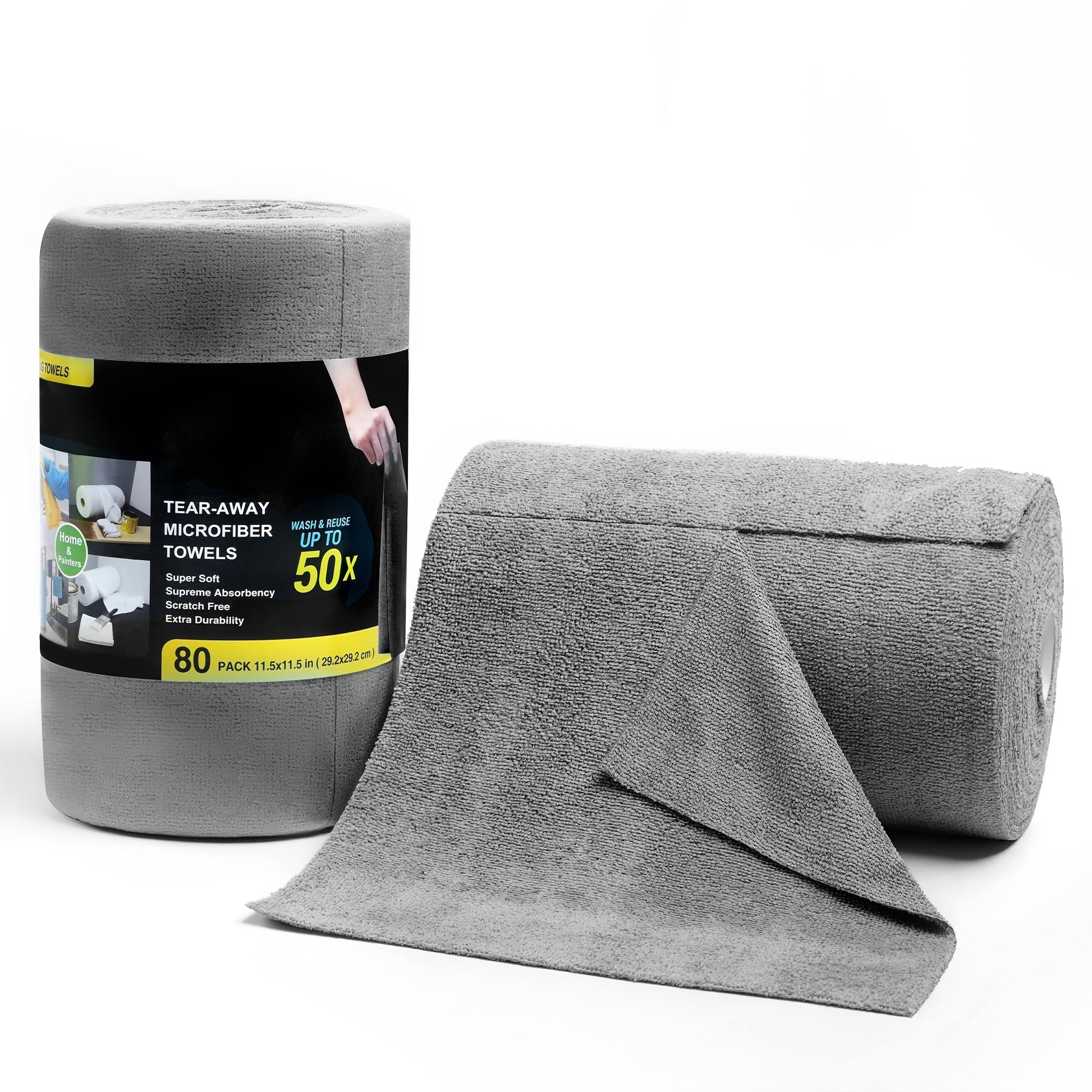 Roll of 80 Microfiber Cleaning Cloths, 29cm Absorbent Lint-Free Towels