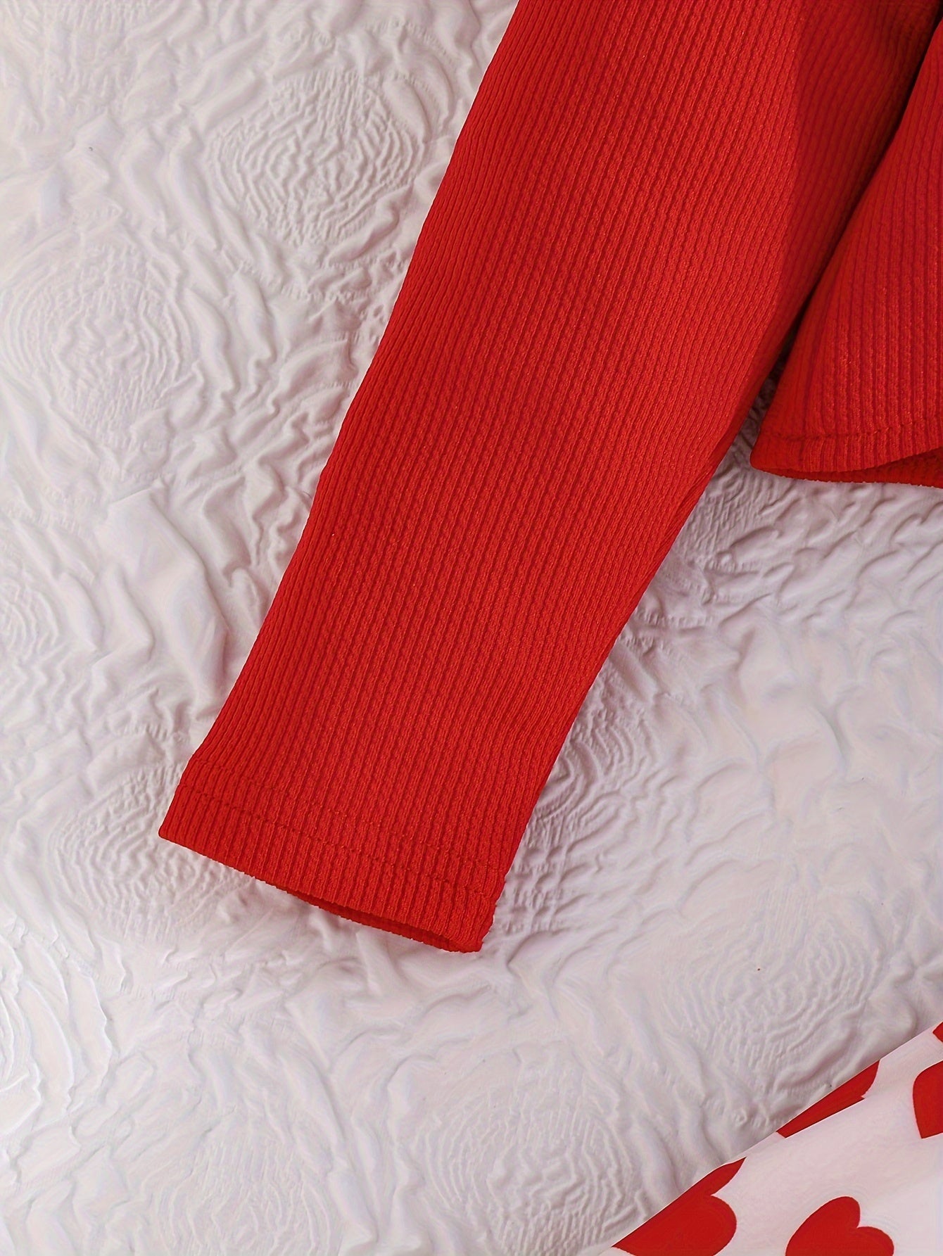 Girls' Valentines Day Outfit Set Long-Sleeved Cardigan and Sleeveless Sundress for Kids