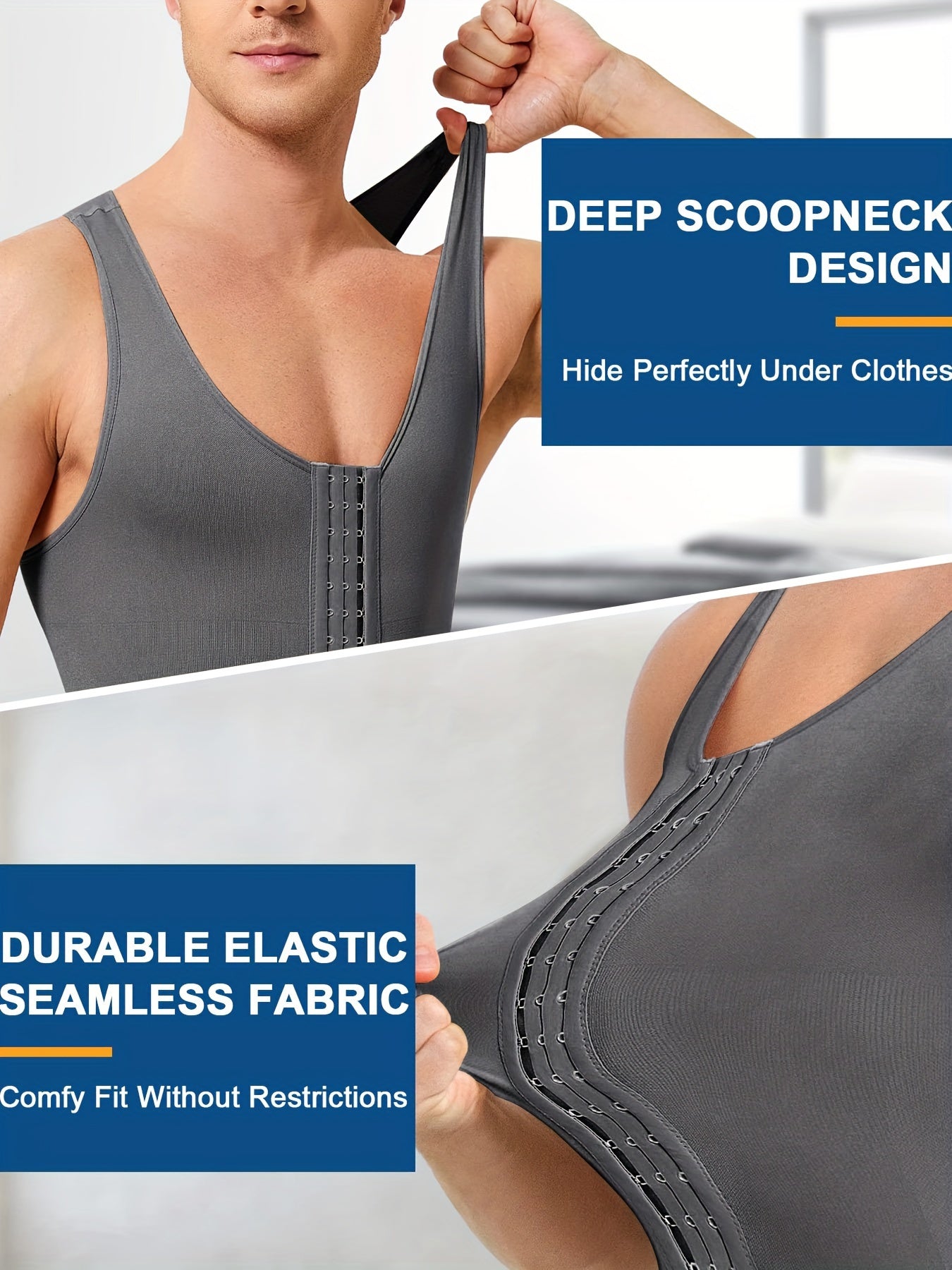 Men's Slimming Athletic Bodysuit with Tummy Control and Shoulder-Baring Design in Royal Blue High-Elastic Nylon Spandex for Fitness Recovery All-Season