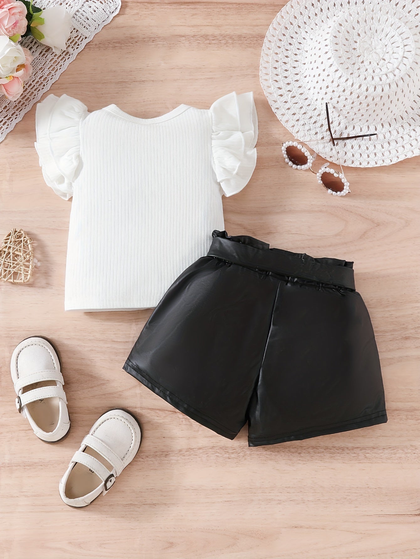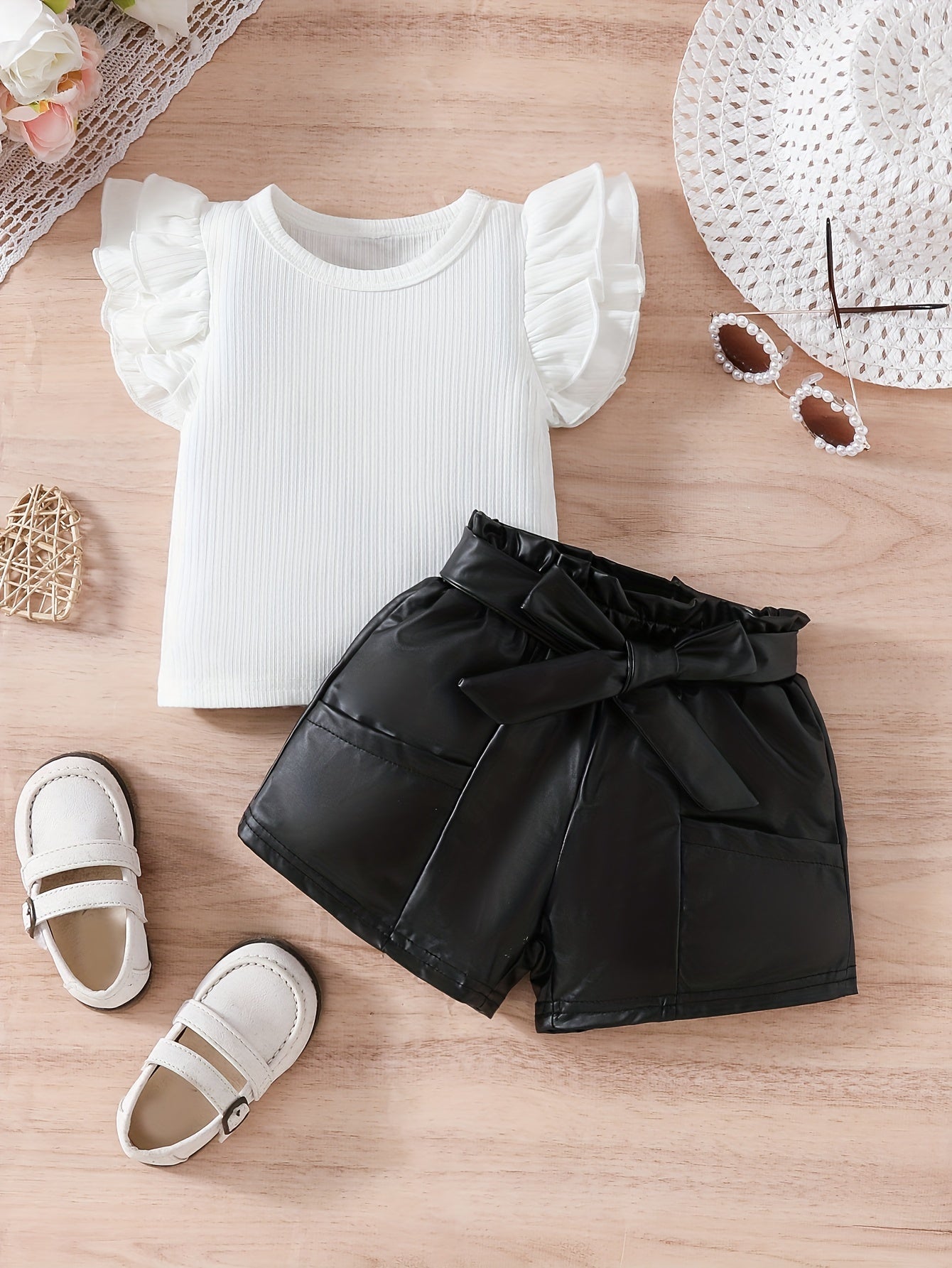Baby Girl Ruffle Sleeve Top and Shorts Set Cotton Spring Summer 0-3 Years