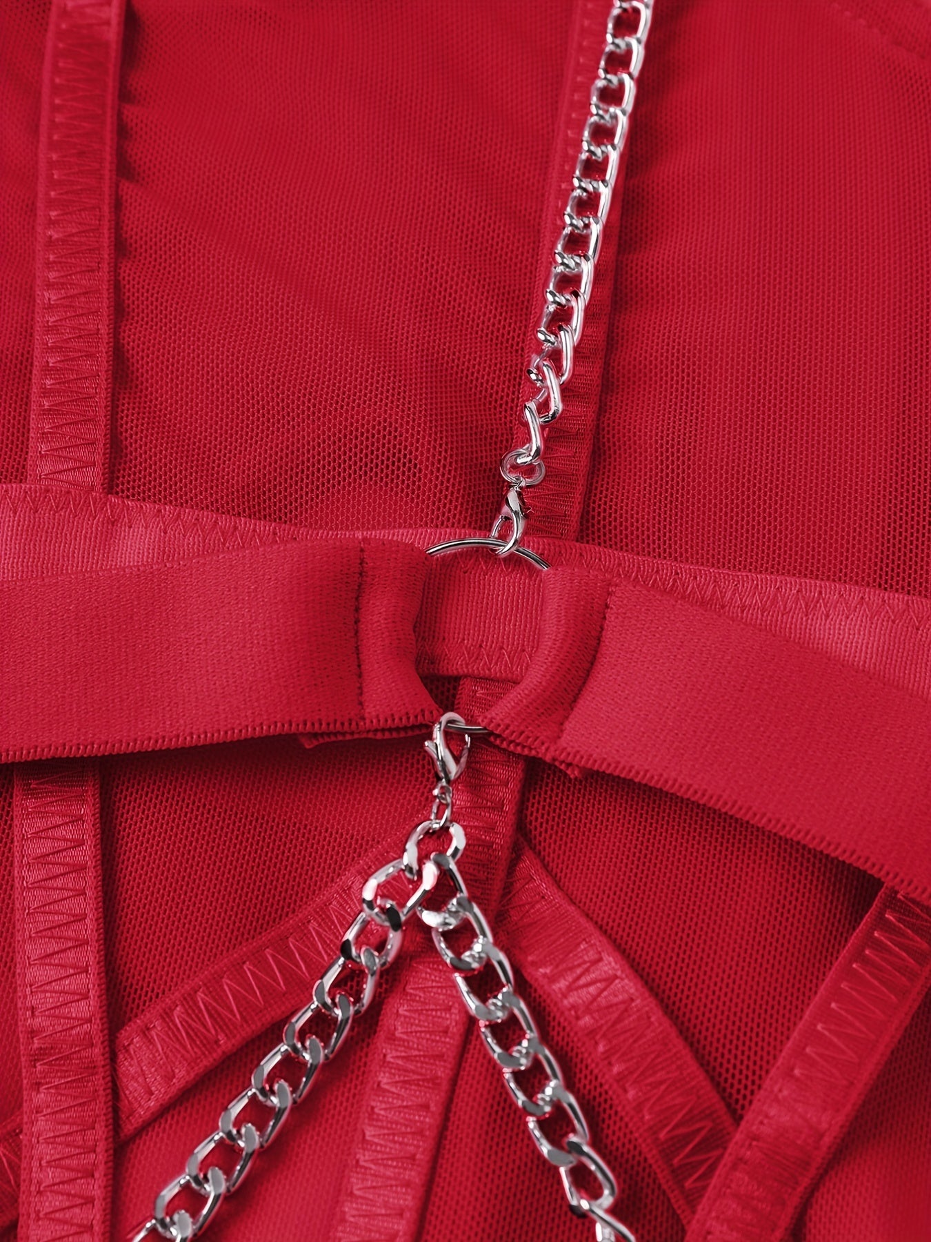 Women's Mesh Halter Teddy with Chain Backless Thong Lingerie