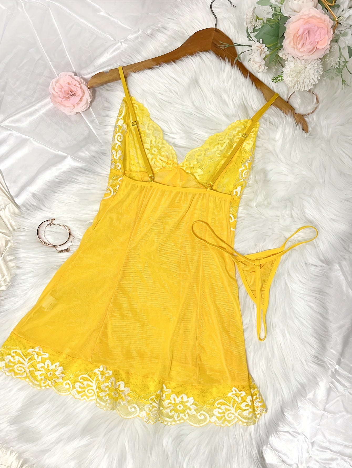 Women's Lace Lingerie Set with Thong and Adjustable Straps