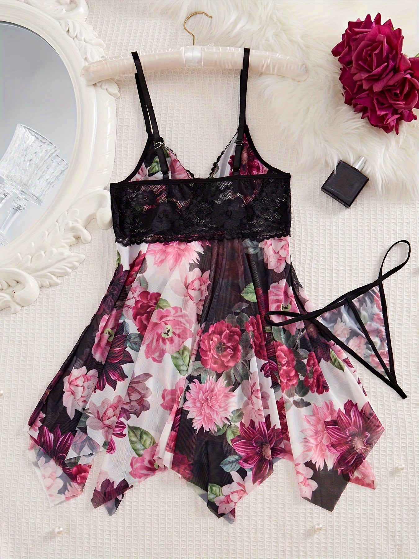 Women's Satin Nightwear Set with Lace Trim and Adjustable Straps