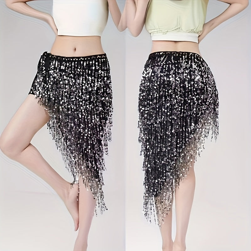 Sequined Tassel Skirt for Belly Dance Performance Waist Woven Beach Party