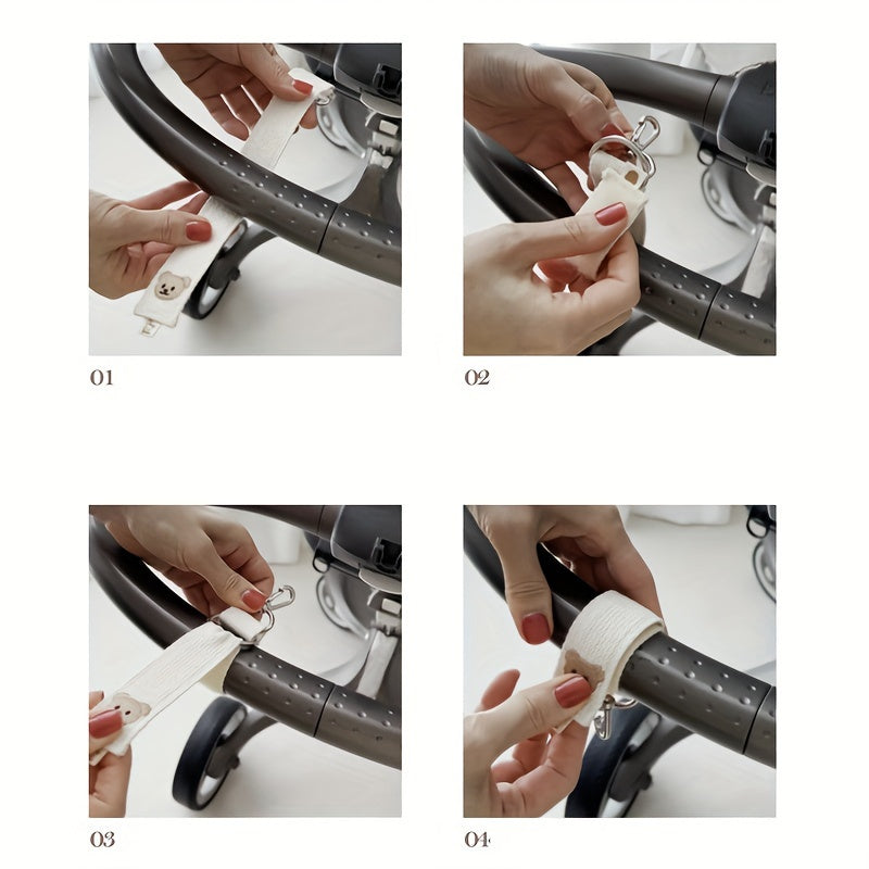 Set of 2 Cartoon Bear Stroller Hooks, Embroidered Baby Stroller Accessories