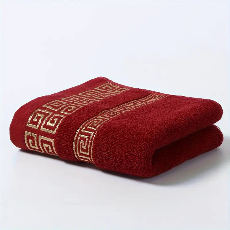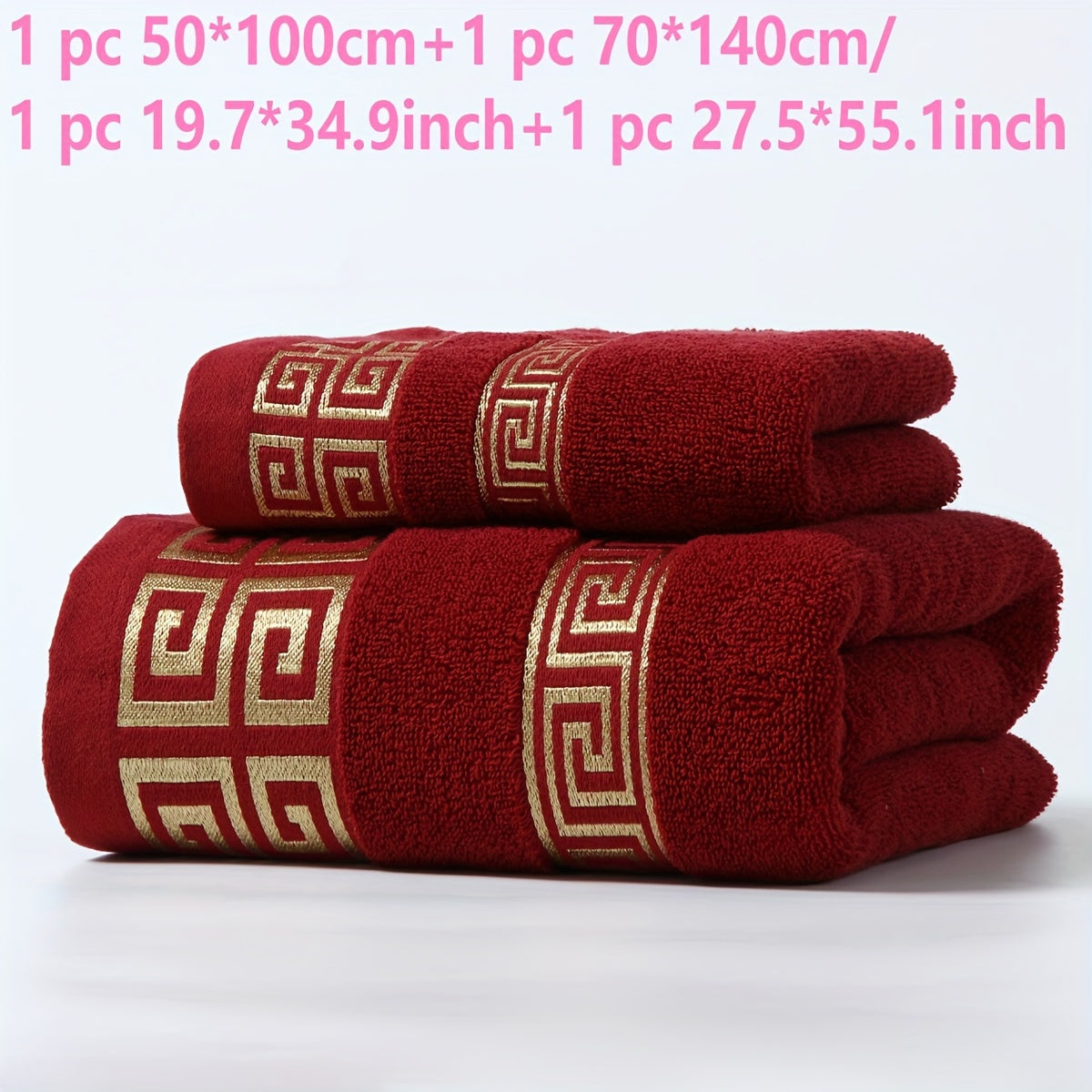 Set of 2 Cotton Geometric Jacquard Towels Bathroom Hand and Bath Towels Absorbent Quick-Drying Soft