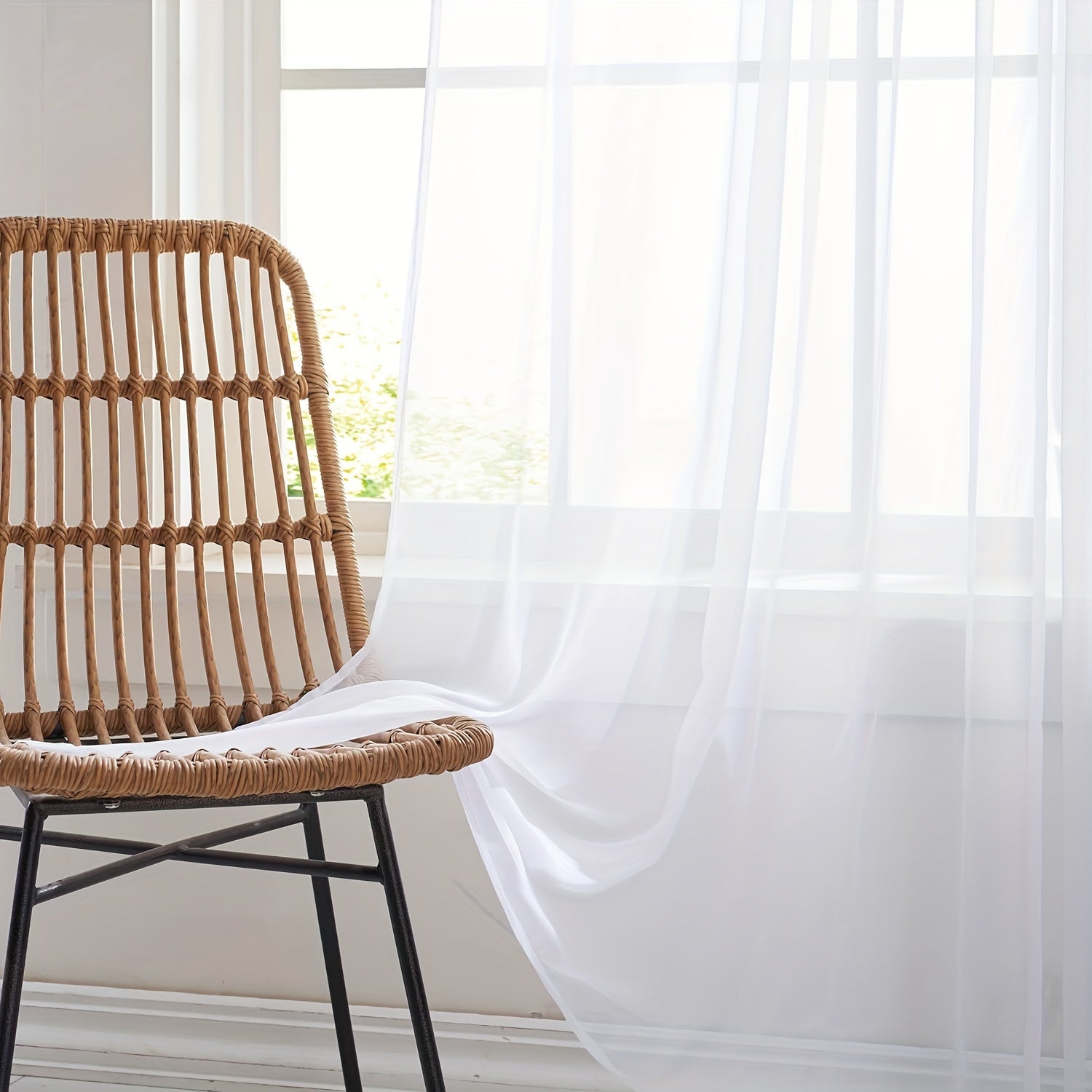 Set of 2 White Sheer Tulle Curtain Panels for Living Room or Bedroom Window Decor