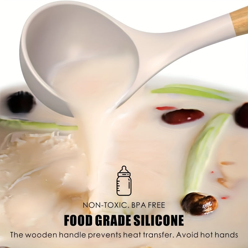 28-Piece Silicone Kitchen Utensil Set with Wooden Handles Non-Stick Washable