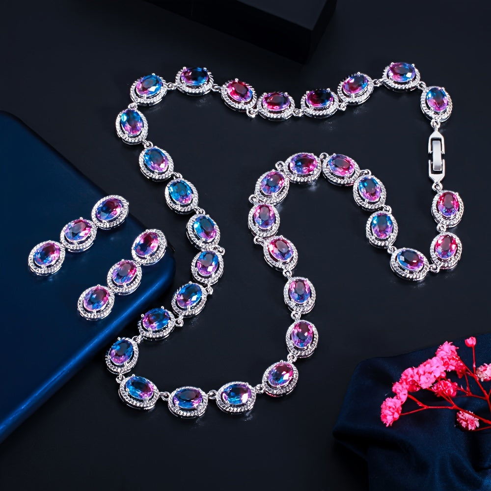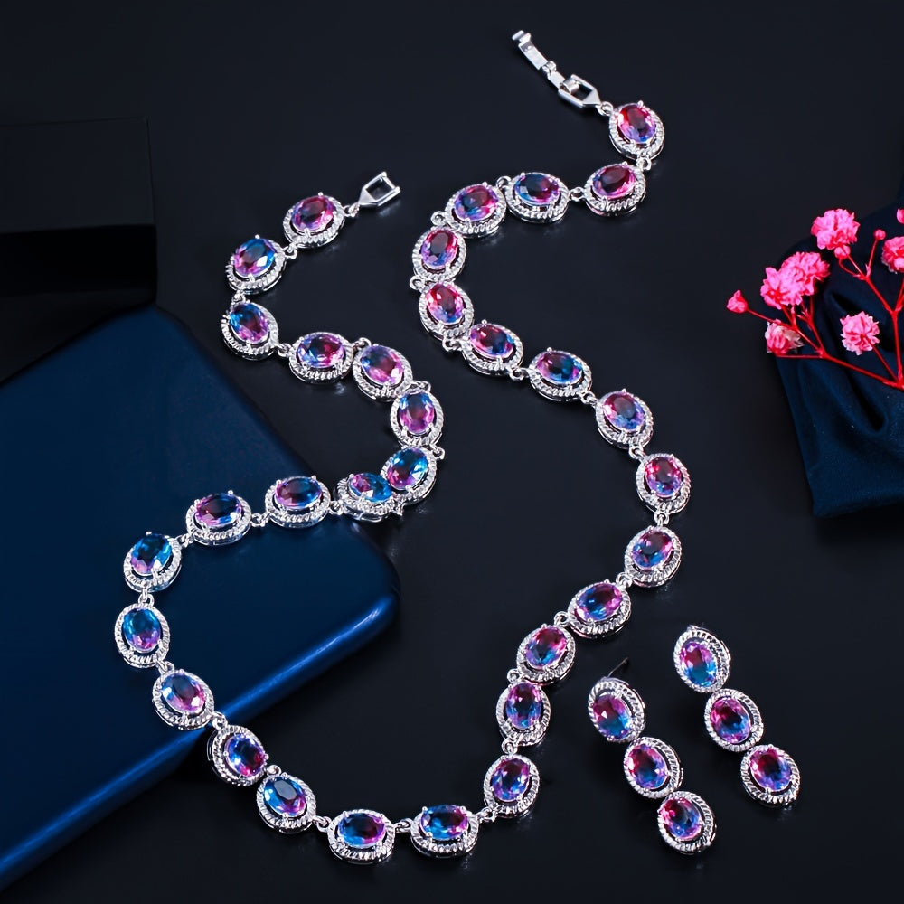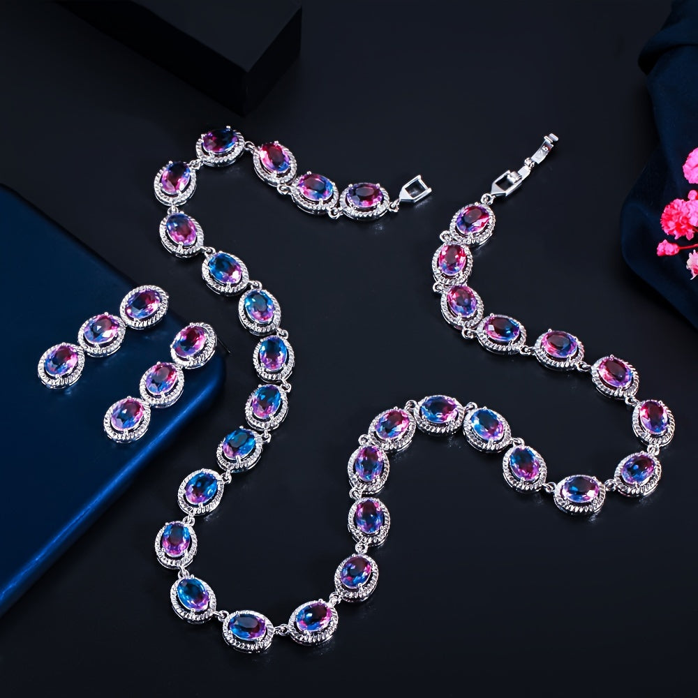 Set of 3 Boho Chic Jewelry Pieces Copper Necklace and Earrings Synthetic Zirconia