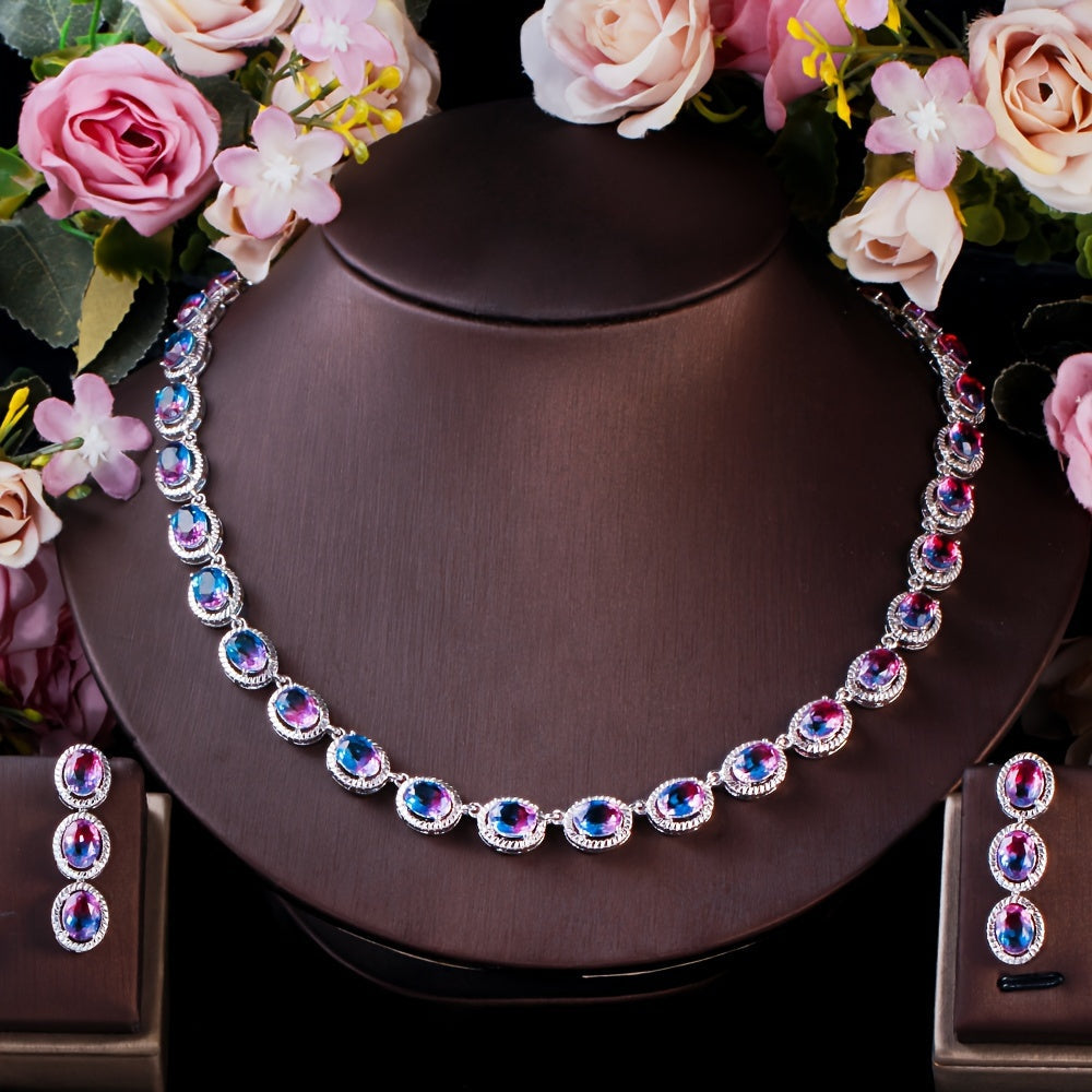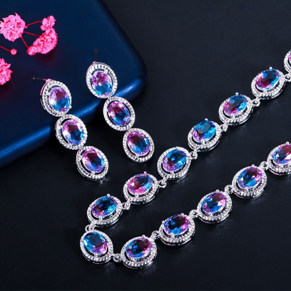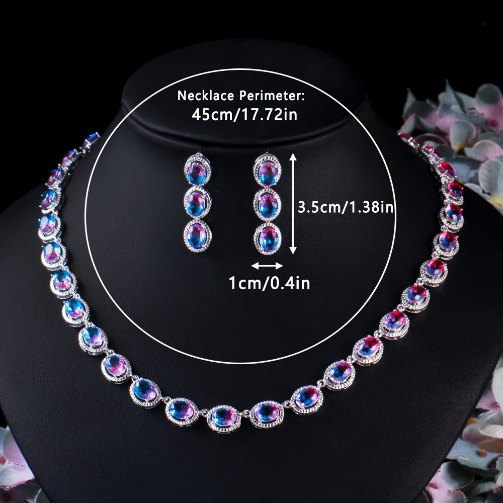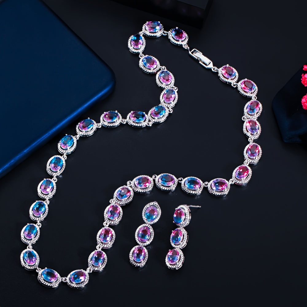 Set of 3 Boho Chic Jewelry Pieces Copper Necklace and Earrings Synthetic Zirconia