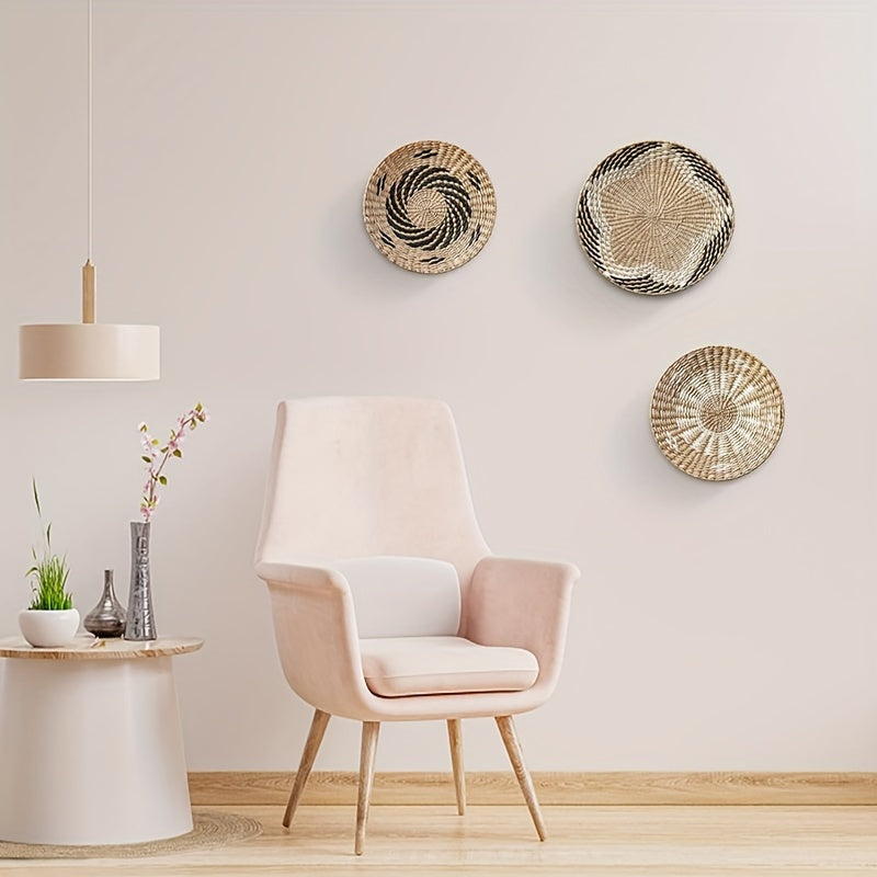 Set of 3 Handmade Bohemian Reed Wall Baskets Rustic Farmhouse Hanging Decor for Living Room Bedroom