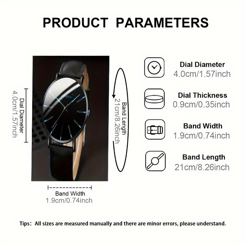 Set of 3 Men's Watches Stylish Round Quartz Wristwatches with PU Leather Straps and Alloy Cases