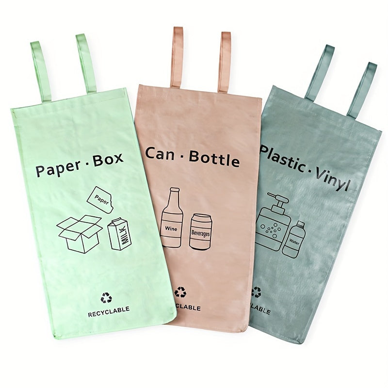 Set of 3 Reusable Recycling Bins Waterproof Plastic Waste Sorter Kitchen Office