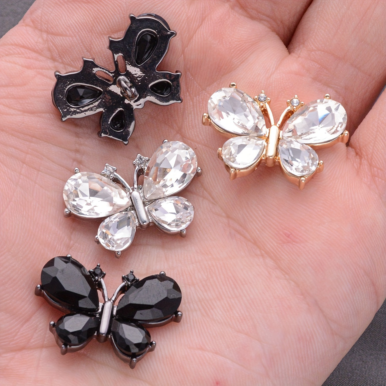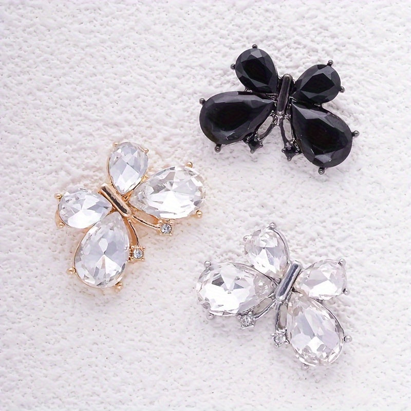 Set of 4 Butterfly Crystal Buttons Alloy for Clothing Accessories and Crafts