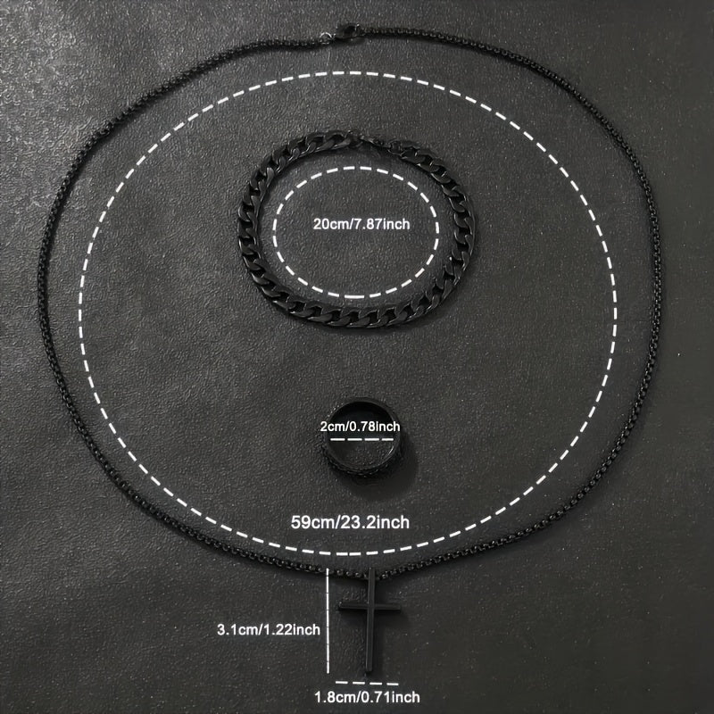 Set of 4 Jewelry and Watch Gift Set with Quartz Watch Cross Pendant Ring and Bracelet